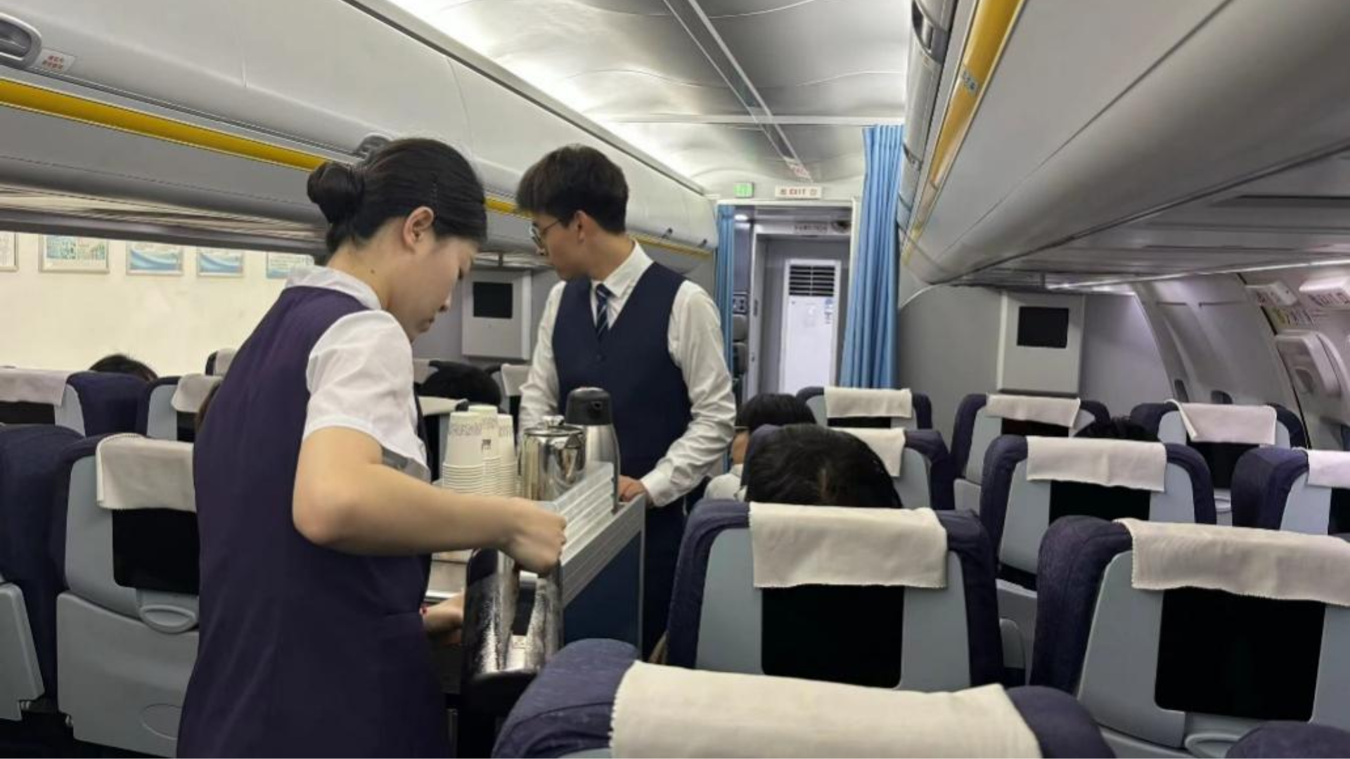 活动中,同学们还模拟了起飞、降落以及突发状况的处理,展现了出色的应变能力和专业素养。从安全演示到客舱服务,再到应急疏散,每一个环节都让同学们感受到了空中乘务员的职责与担当。