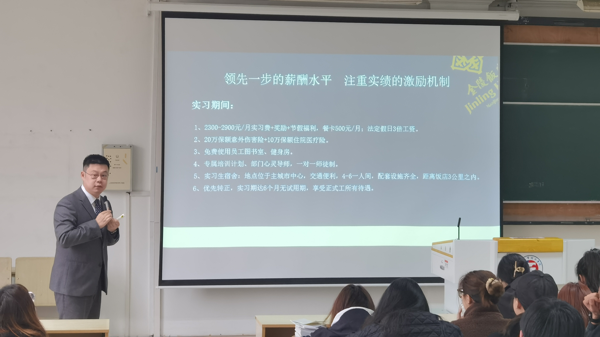 这次南京金陵饭店集团有限公司提供的都是为培养技术技能型人才和基层管理人员做储备的岗位,就业前景十分广阔。宣讲会上,企业负责人为同学们详细介绍了色情视频、企业概况、员工的薪酬福利待遇以及住宿情况,重点讲解了本次宣讲的岗位信息和岗位发展的空间。宣讲结束后大家对关心的问题进行了提问,企业负责的同志一一作了解答。