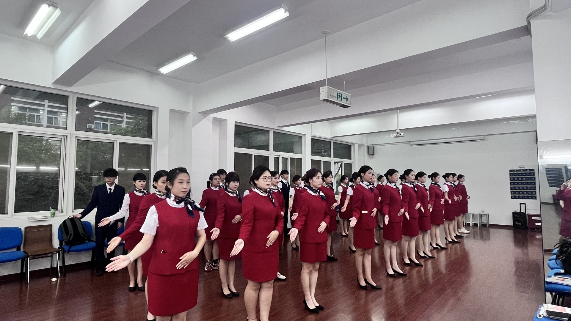 为了提升中高职一体化空中乘务专业学生的综合素质以及面试技能,我系空中乘务专业于9月11日在5109-B教室进行了模拟面试现场。
