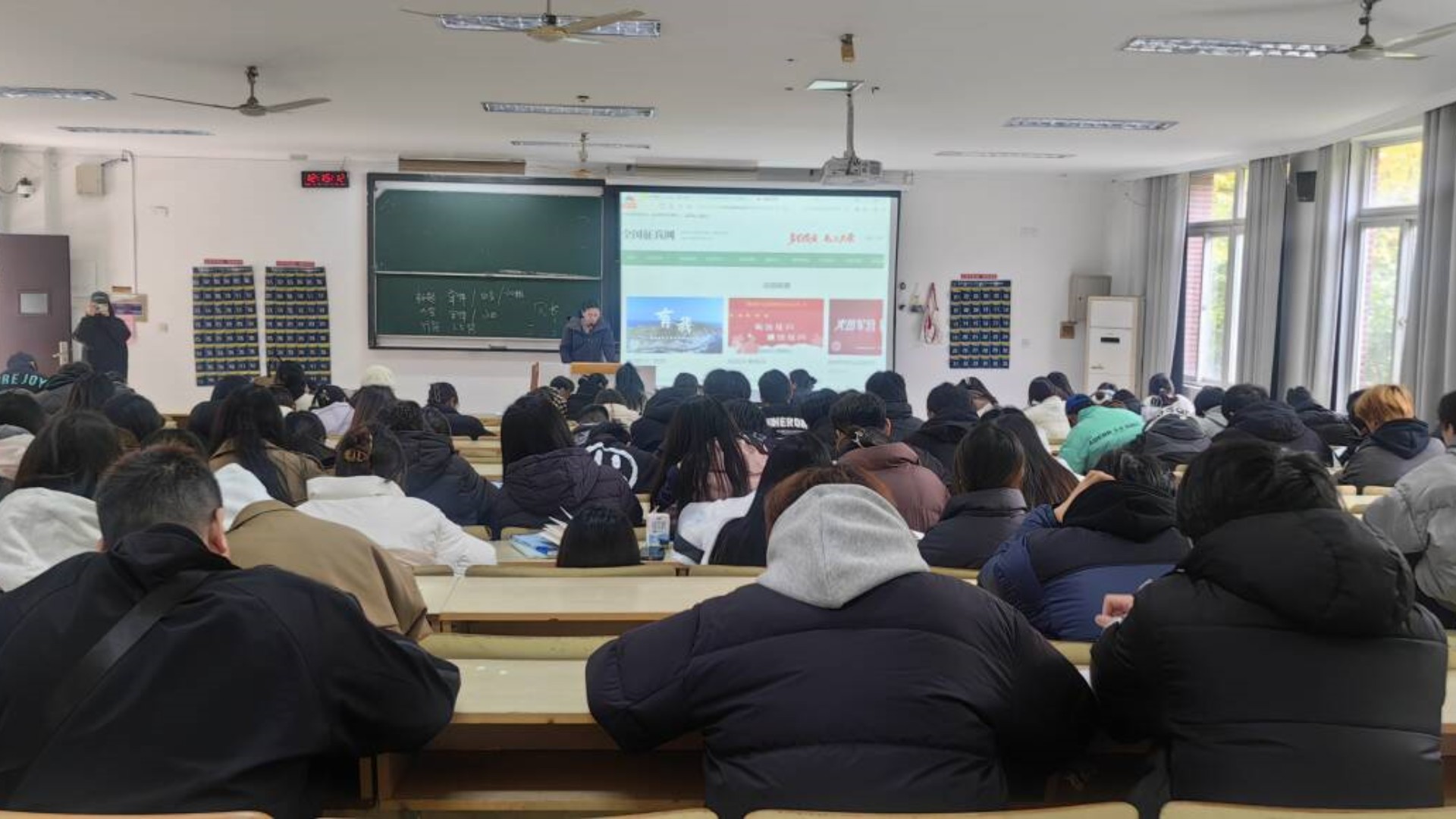 为进一步落实国家相关征兵工作要求,给军队输送高质量专业人才,帮助大学生全面了解征兵政策,12月6日中午,民用航空系在1103举行2025年征兵入伍宣讲会。辅导员于文倩老师,退伍学生代表及系全体学生参加本次宣讲会。
