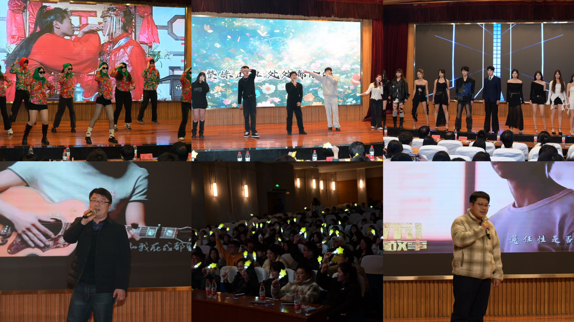 整场晚会共12个节目,涵盖舞蹈、歌曲、模特秀、朗诵、小品等节目类型,师生在欢声笑语中回望过去,展望未来,一起快乐跨年。