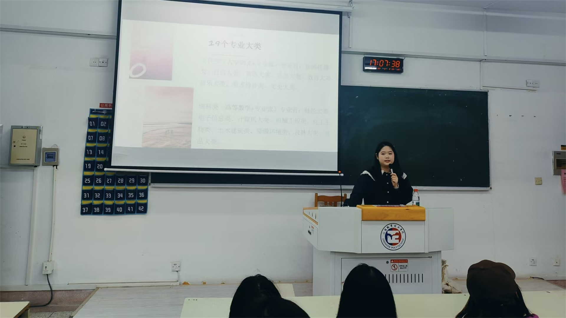 为助力学生更好地规划大学生活,营造良好学风氛围,充分发挥优秀学生的朋辈引领作用,3月23日下午,基础教育系举办了“朋辈引航·筑梦未来”分享会。本次分享会邀请了2024届优秀毕业生、现就读于南京航空航天大学金城学院的白良文担任主讲,分享专转本及教师资格证考取经验,由辅导员沈言静老师主持,基础教育系2023级全体学生参加。