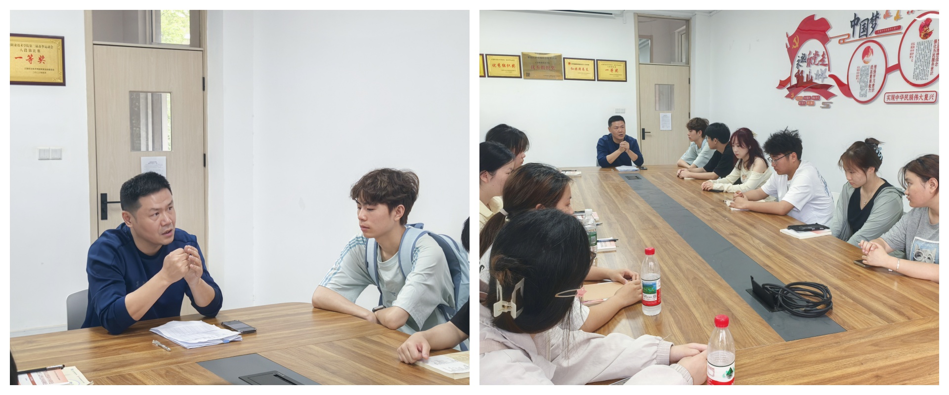 会中包毅及刘翠云与学生代表进行详细的谈话,不仅针对学生的生活情况进行了解,同时也针对学生的学习、人际关系等进行详细了解。包毅提出系部对学生的成长支持绝不停步,系部整合现有资源,为生活困难的同学提供勤工助学岗位,开放钢琴房、舞蹈教室以及学生一站式社区供学生使用,特别是针对学业有困难的同学以班级为单位组成学业帮扶小组,安排学习成绩好的班委提供“一对一”学业辅导。