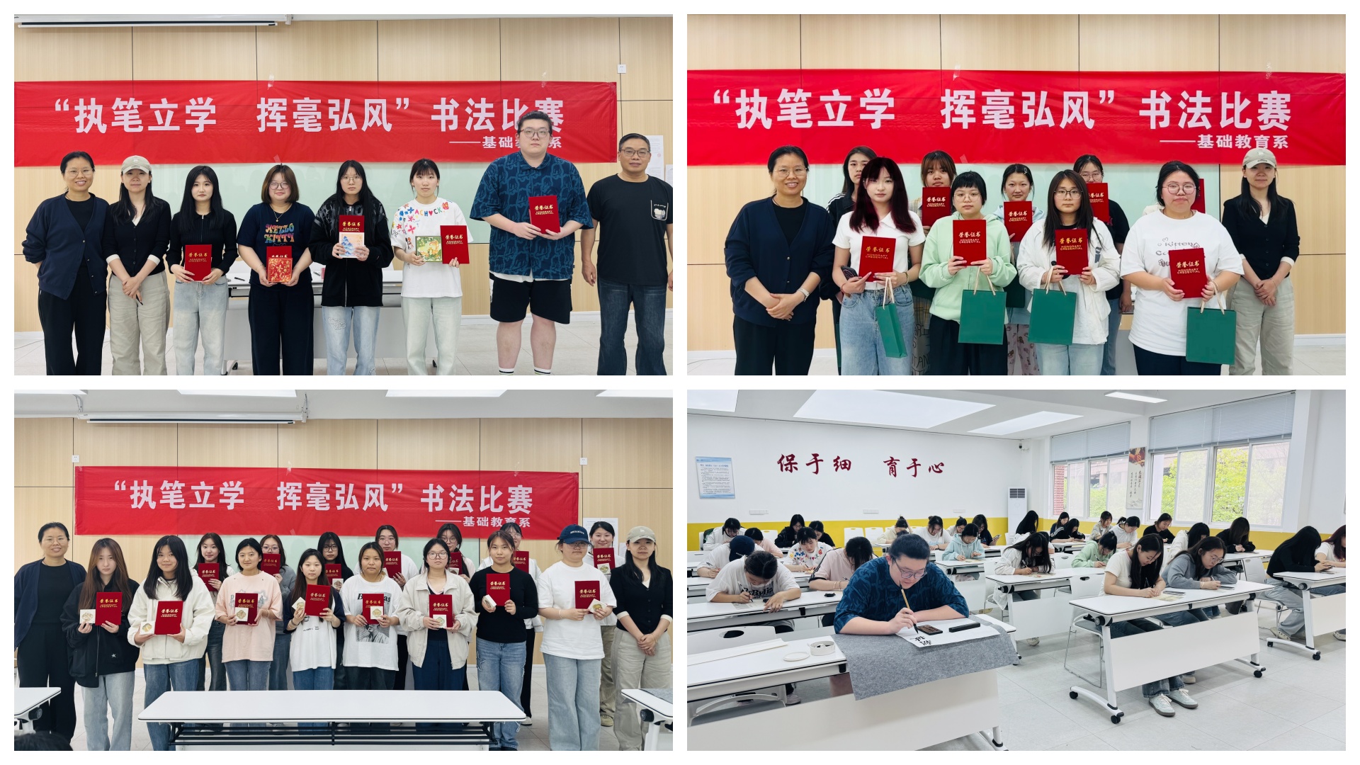作品完成后,评委老师从笔法运用、结构章法、整体美感等多个维度进行综合评审。经过严谨、公正的评选,一批技艺精湛、风格各异的优秀作品脱颖而出。现场为获奖同学颁发了荣誉证书与精美奖品,充分肯定了他们在书法艺术道路上的勤学与专注。