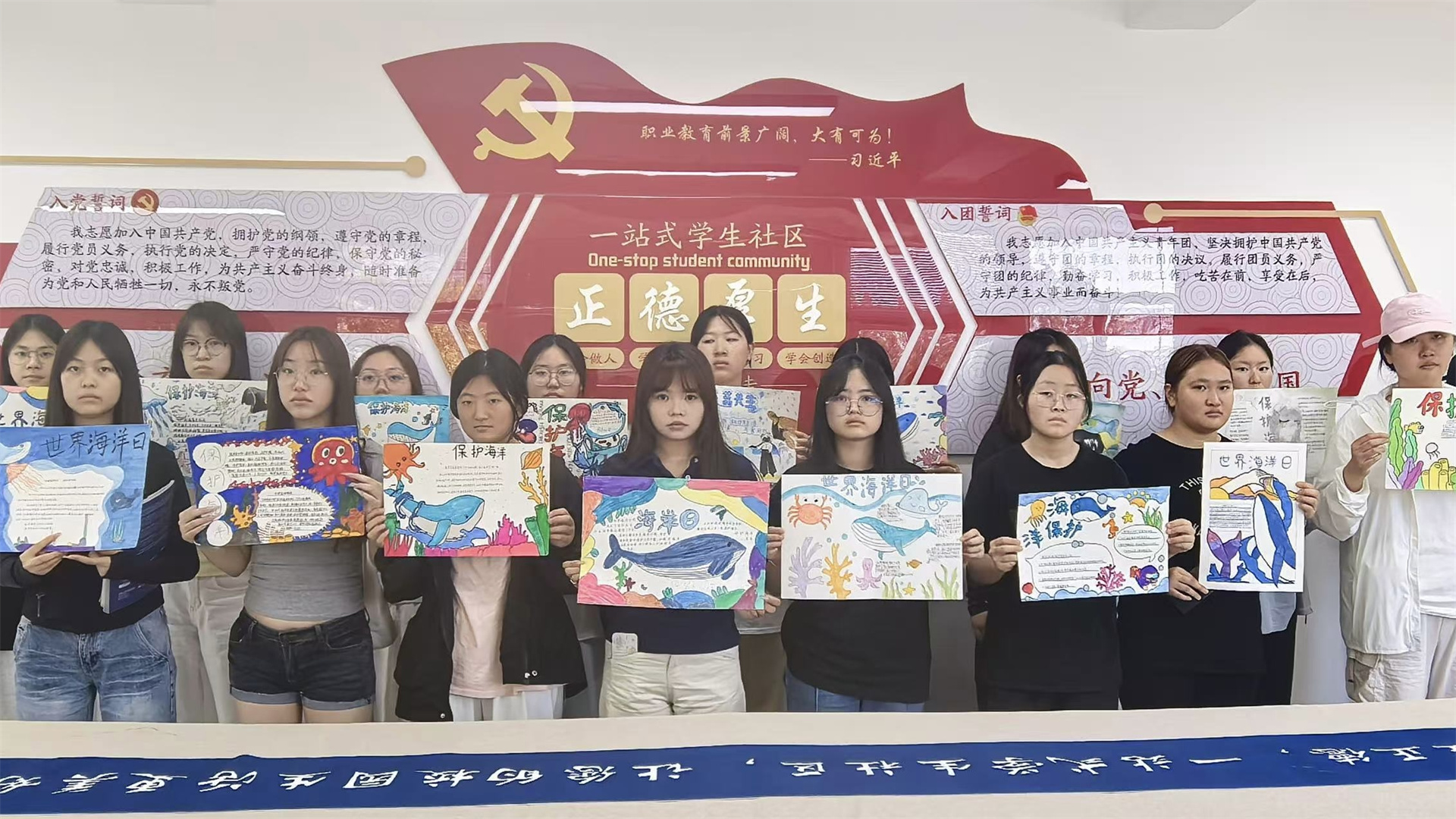 活动第一阶段是“保护海洋”主题手抄报创作。同学们积极参与,充分发挥专业特长与艺术想象,用画笔描绘心中的海洋世界。作品形式多样、内容丰富:有的展现海底生物的多样与和谐,有的聚焦塑料污染与生态破坏,传递出强烈的环保呼声。每一幅作品都饱含同学们对海洋生态的关注与热爱,既富有艺术感染力,又具有深刻的教育意义。