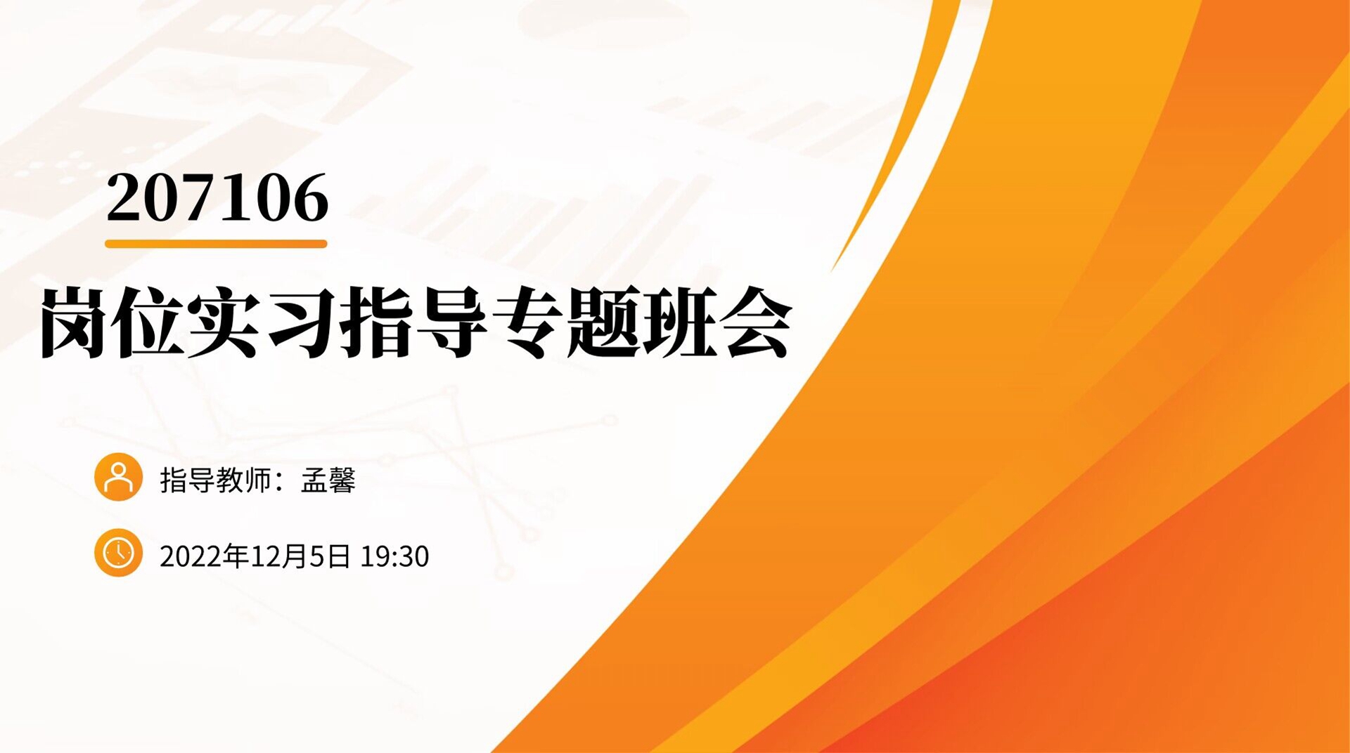 为确保2020级学生岗位实习有序进行,加强对学生实习的动态管理,抓实抓细实习实训工作,促进学生的高质量就业。12月5日晚,基础教育系孟馨老师召开岗位实习指导线上会议。会议由实习指导教师孟馨主持,207106班全体同学与辅导员嵇姗参会。