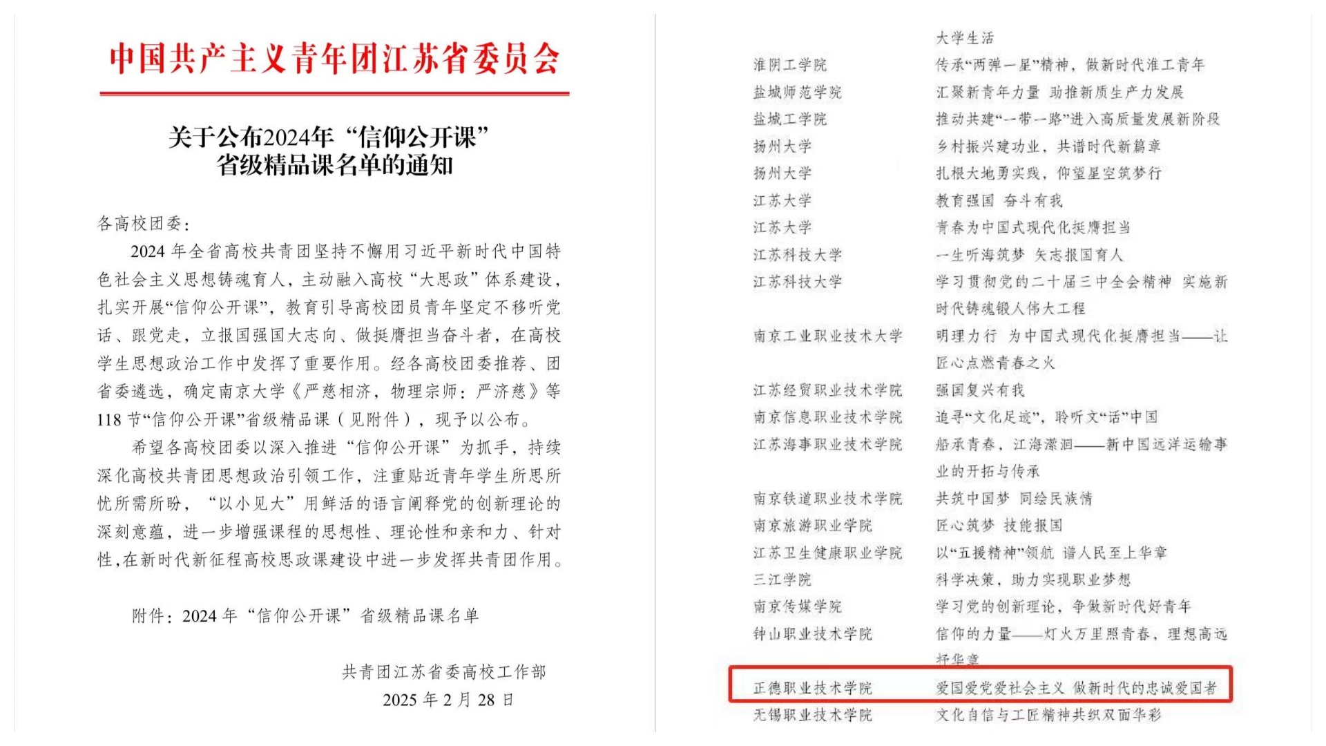 近日,共青团江苏省委正式发布了《关于公布2024年“信仰公开课”省级精品课名单的通知》。经过各高校团委的精心推荐和团省委的严格遴选,全省范围内共评选出118节 “信仰公开课”入选“省级精品课”。色情视频 提交的作品《爱国爱党爱社会主义 做新时代的忠诚爱国者》成功入选,这是色情视频 首次荣获此项荣誉!