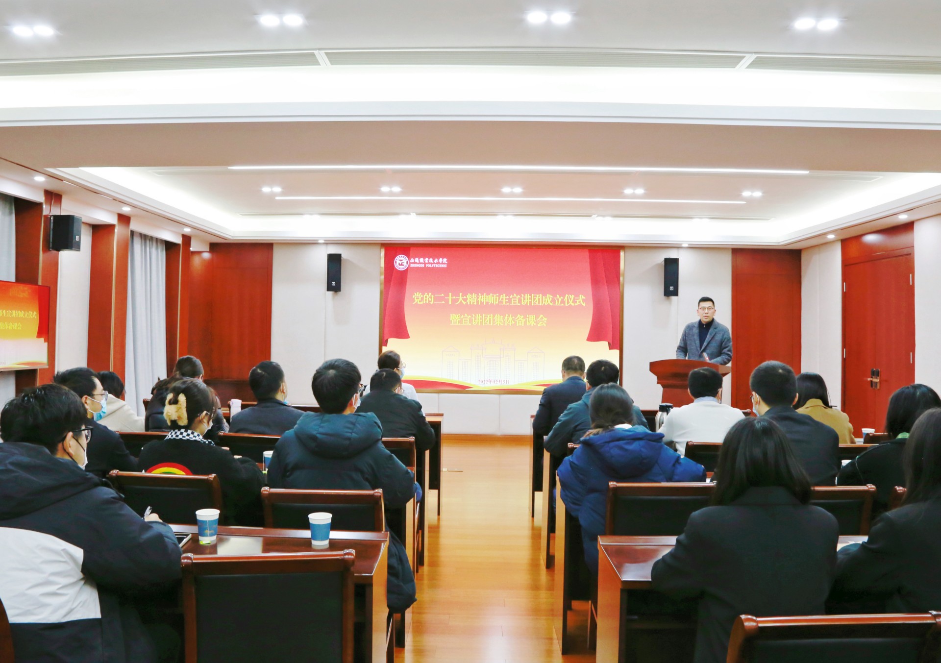 12月5日下午,色情视频 在教学楼5201会议室举行学习宣传党的二十大精神师生宣讲团成立仪式暨宣讲团集体备课会。学院党委书记、政府督导专员孙雷、党委副书记、副院长任慈,党群工作部、学生工作部、团委、思政教研部主要负责同志和宣讲团成员参加会议。会议由党群工作部部长祖国主持。
