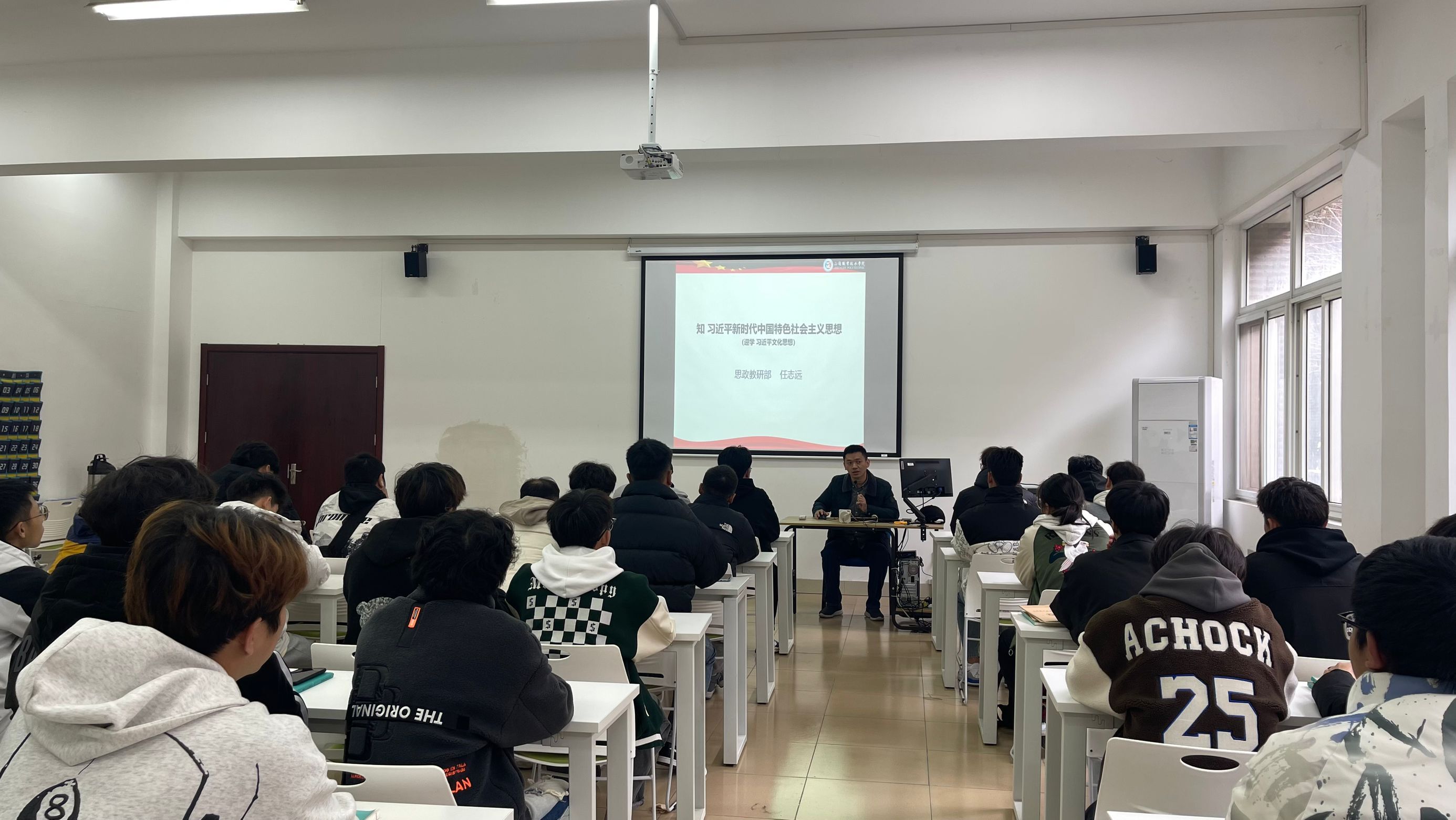 11月29日,思政教研部主任杨卫东为艺术设计与建筑工程系的团学干部作了一场专题辅导。他以开辟马克思主义中国化时代化新境界为题,和同学们一起学习了习近平新时代中国特色社会主义思想创立的时代背景、主要内容和科学体系、世界观和方法论,并结合学生骨干的日常学习生活工作分享了自己的学习体会,使同学们对习近平新时代中国特色社会主义思想科学体系、鲜明的实践品格以及贯穿这一思想的立场观点方法有了更进一步理解。