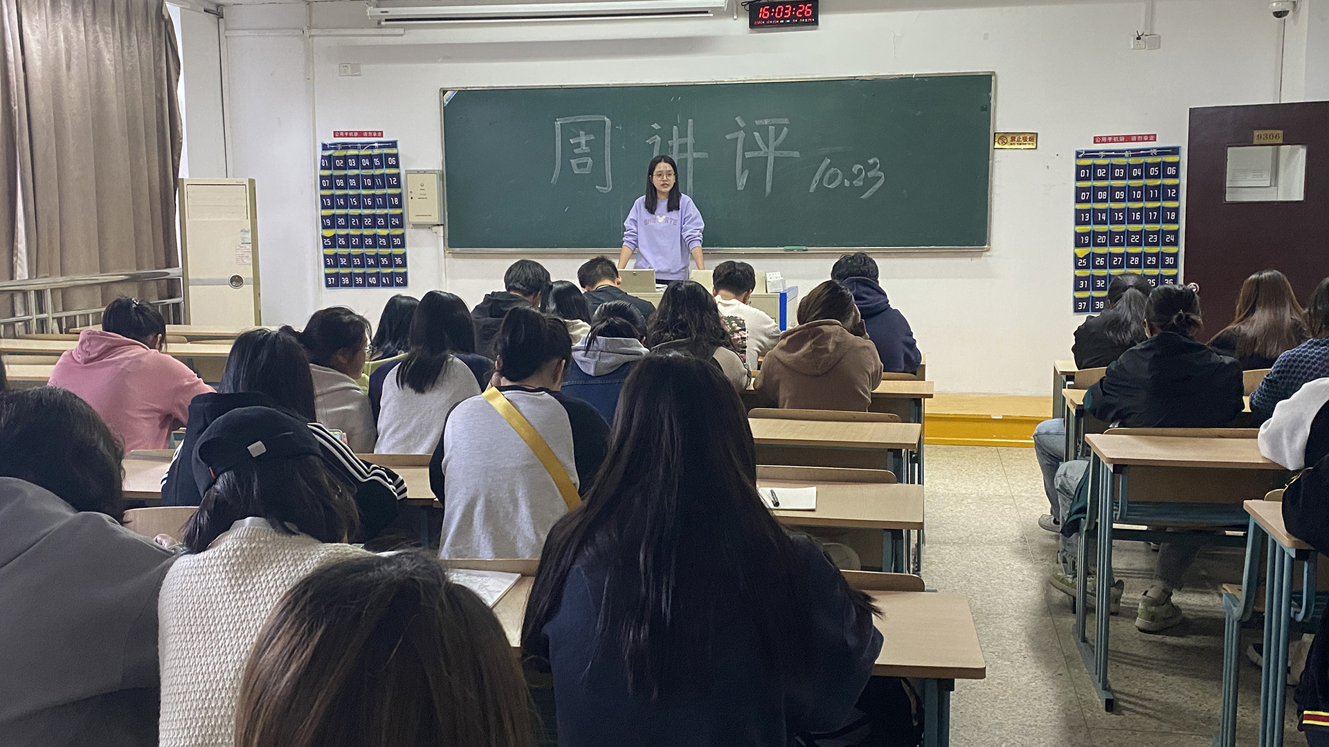 开展特色周讲评,带领同学们了解国家时事,学习习近平新时代中国特色社会主义思想;学习党的二十大精神报告,让同学们及时了解社会,增长知识、拓宽视野,更好的帮助学生融入社会,适应社会的发展。