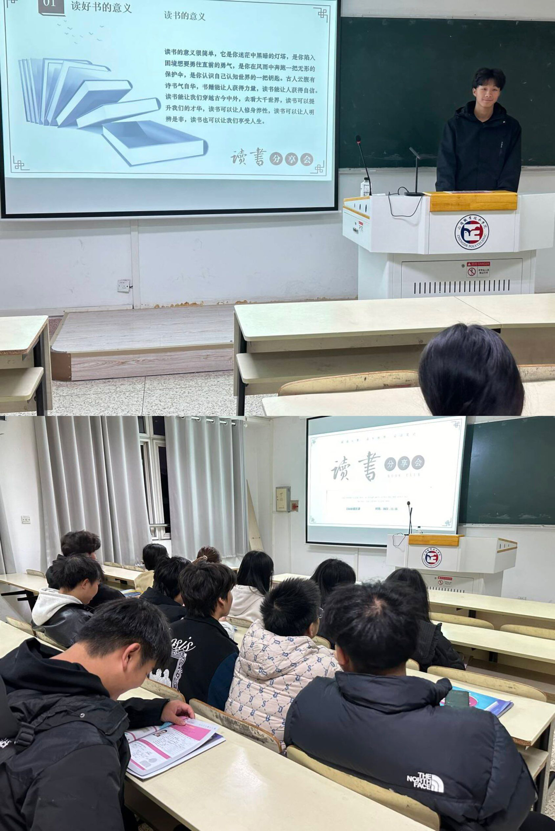 23级数字媒体技术与新闻采编与制作专业的学生开展了读书分享会活动,班级同学共享书中所见所闻所感,展示书中精彩的世界,呼吁大家要多读书、读好书。现实生活里到达不了的地方、体验不到的情感,都可以在书里遨游、感受。