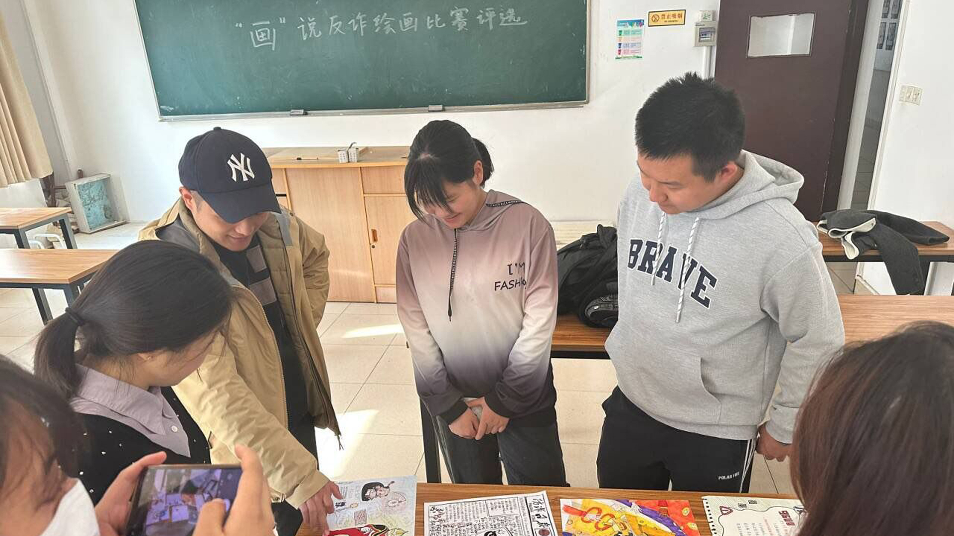 班主任老师认真查看了每位同学的作品,分别从海报排版、纸张大小、绘画技巧、色彩以及文字分布等方面给出了专业性的指导,最后在班主任老师和班级评议小组的认真评选下,6张作品脱颖而出。