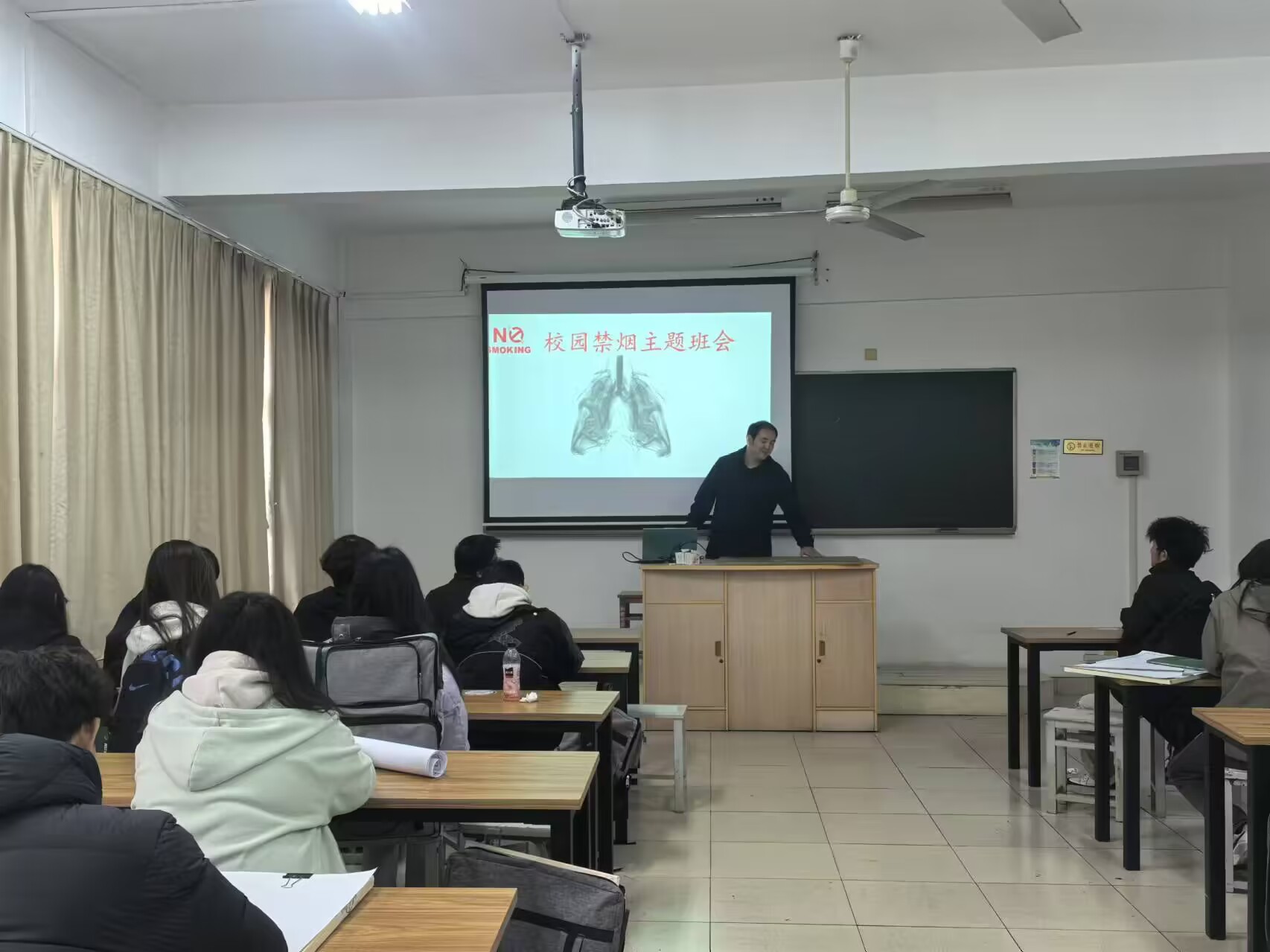 24级建装1班的班主任夏正宇老师组织了一场校园禁烟主题班会。班会上,夏老师详细讲解了吸烟的危害以及禁烟的重要性,并鼓励同学们积极参与禁烟活动,倡导健康生活。