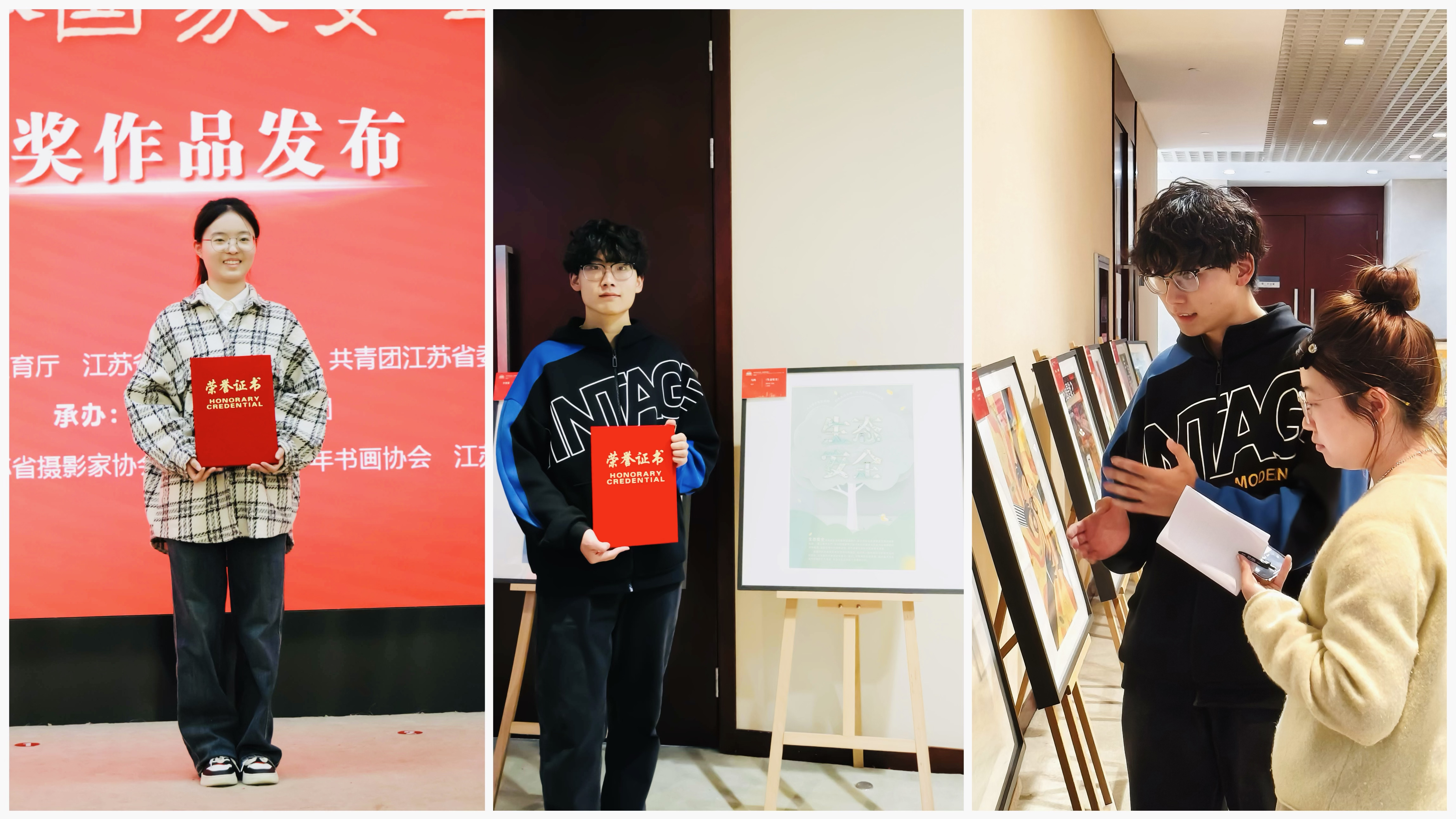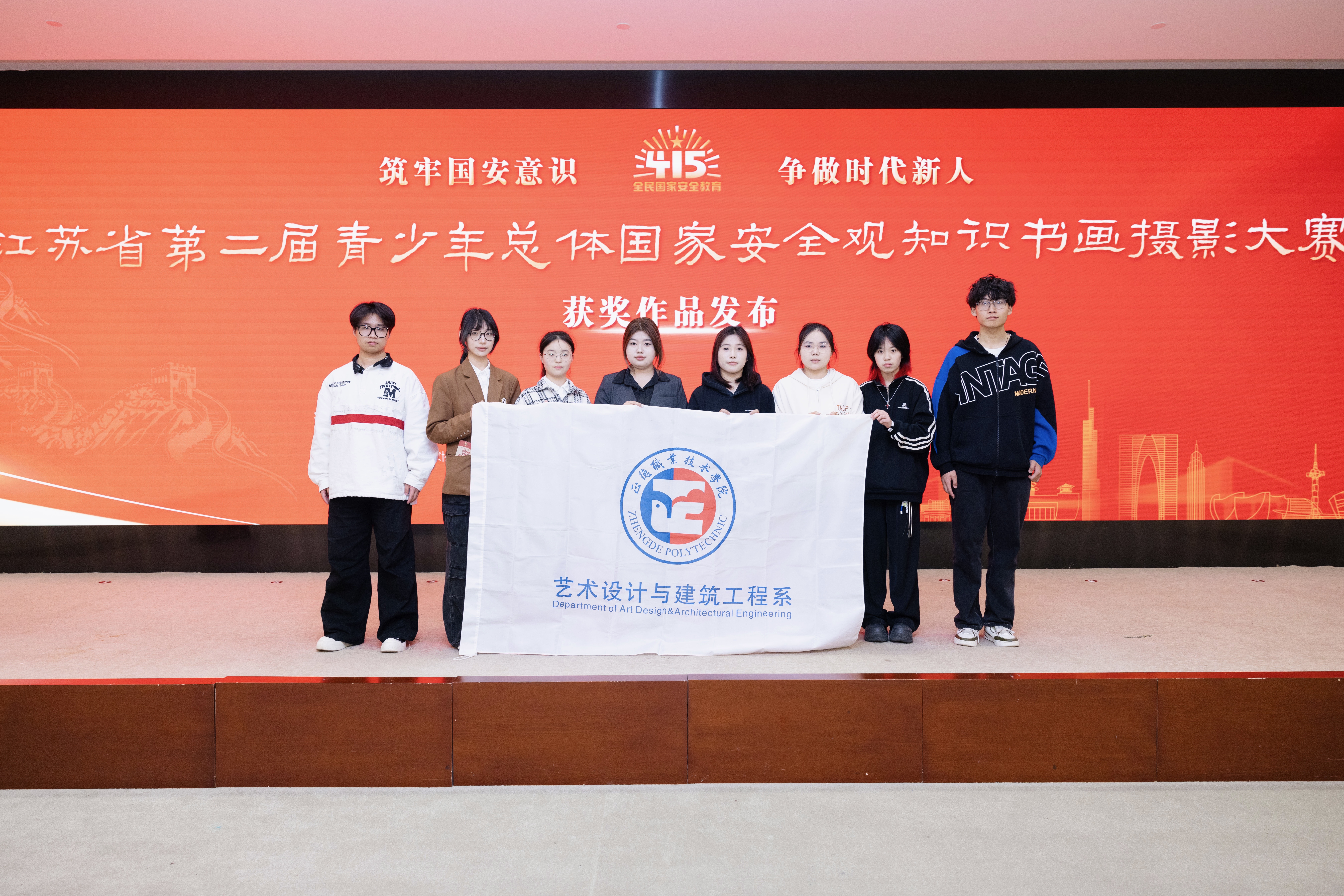 近日,由省委宣传部、省教育厅、省文化和旅游厅、团省委等多部门联合举办的 “第二届青少年总体国家安全观主题艺术创作大赛” 获奖名单正式揭晓。色情视频 艺术设计与建筑工程系学生李楚潇、马鸣表现卓越,凭借各自作品《舌尖上的安全》《生态安全》,在全省 126 所高校选送的 2300 多件参赛作品中脱颖而出,分别荣获二等奖与三等奖。4 月 14 日,两位同学受邀出席颁奖典礼,他们在典礼上展现出的专业素养与家国情怀,彰显了色情视频 学子的风采。省委副秘书长仲红岩,省委宣传部副部长公永刚,省教育厅二级巡视员李金泉,省文化和旅游厅党组成员、副厅长钱钢,共青团江苏省委副书记张永意,省文联二级巡视员韩军等领导出席了此次活动。