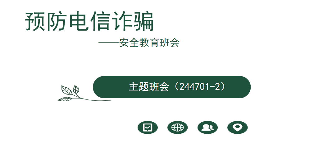 2025年4月上旬,为增强同学们对诈骗等违法犯罪行为的防范意识,保护学生人身财产安全,时永玲、李卉两位班主任在班级中开展了“预防电信诈骗”安全主题班会。