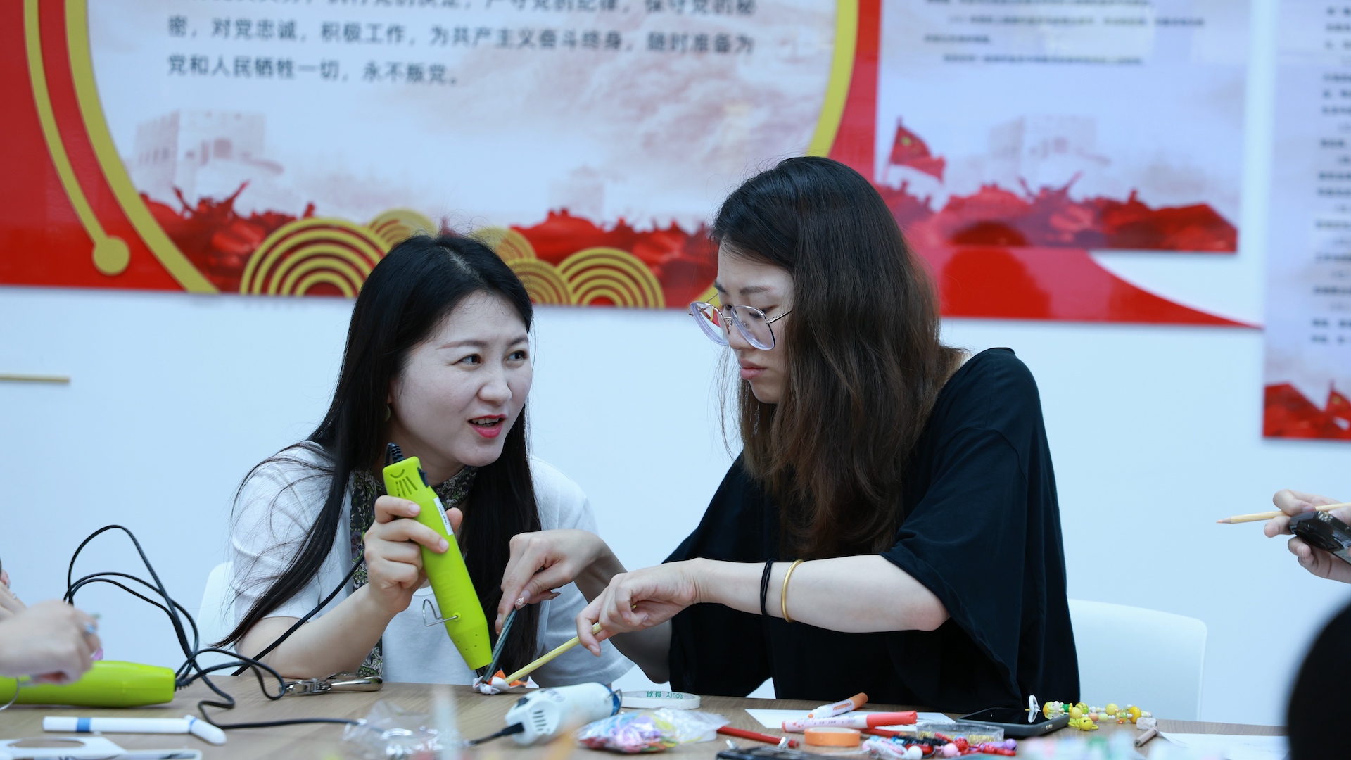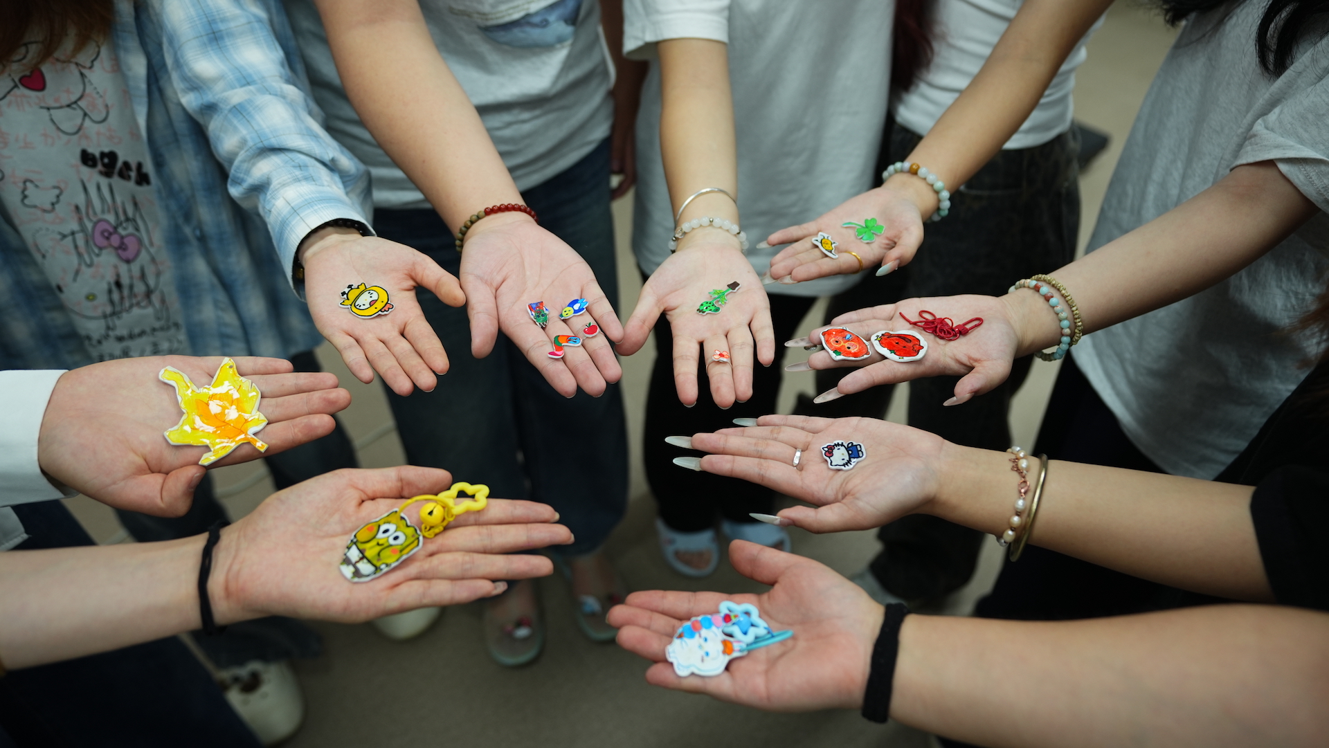 唐晨老师及其他在场老师也拿起画笔和工具,与学生们围坐一起,共同构思、动手实践。师生们边做边聊,分享创作灵感,交流生活点滴,欢声笑语不断,无形中拉近了心与心的距离。一件件独一无二的小作品,不仅是个人创意的结晶,更成为承载情绪、表达自我的“心灵缩影”。