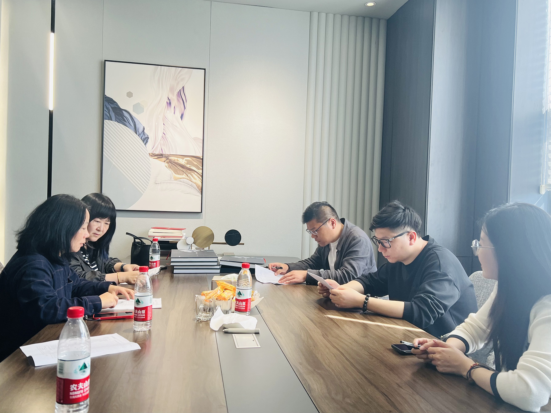 招聘结束后,建筑与装饰专业群的三名专业教师与铭望装饰的设计总监、资深设计师及公司人事主管吕梦婷开展了专业建设的研讨会。会上,分别就建筑装饰工程技术、环境艺术设计和建筑室内设计专业的2024版人才培养方案的课程设置、培养目标等方面进行了沟通和交流。铭望装饰的设计总监对目前的人才培养给予了充分的肯定,表示我们的课程设置完全符合公司的需求。设计总监也提出了一些建议,例如可以开设一门人体工程学课程,目前的毕业生在尺寸、比例等方面比较欠缺;课程教学需再加强学生的实践动手能力,创造更多的机会带学生到项目现场观摩;引导学生扩充知识面,可以开设一些有助于提升沟通交流能力的课程等等。此次的校企研讨让专业教师对企业的需求有了更深入的了解,为2024人才培养计划的修订工作提供了重要的依据,同时也有助于专业教师的课程建设。