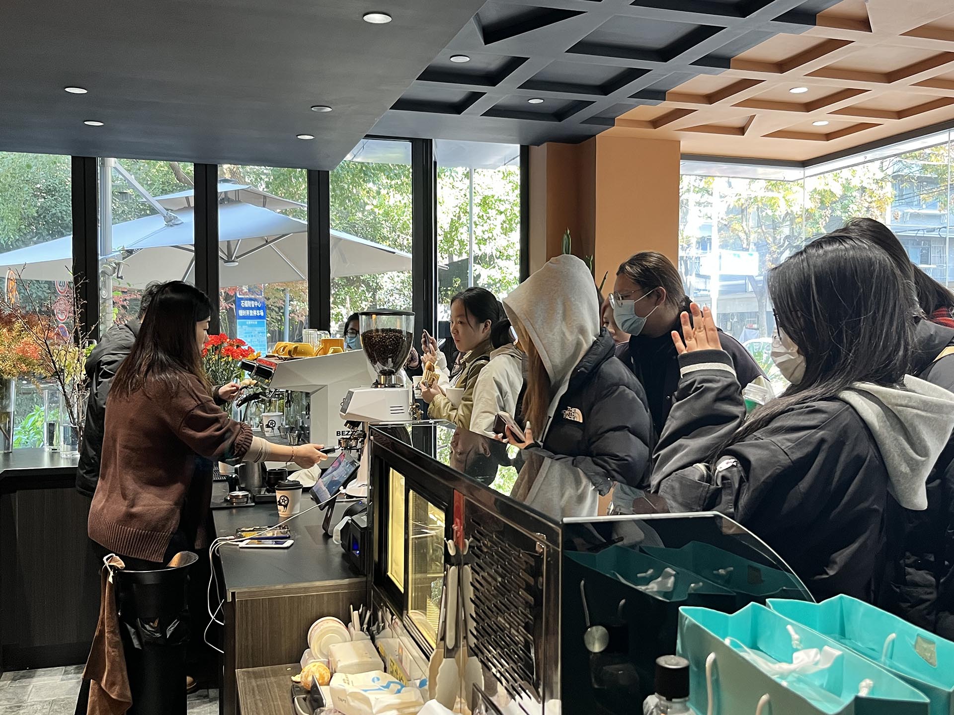 智檬智能科技有限公司赵总热情接待,并为学生做了企业介绍和色情视频宣讲。她与学生们热情互动,并亲手为大家制作咖啡。学生们认真听取了企业介绍,询问自己关心的问题,进行了现场的拍摄和取材。