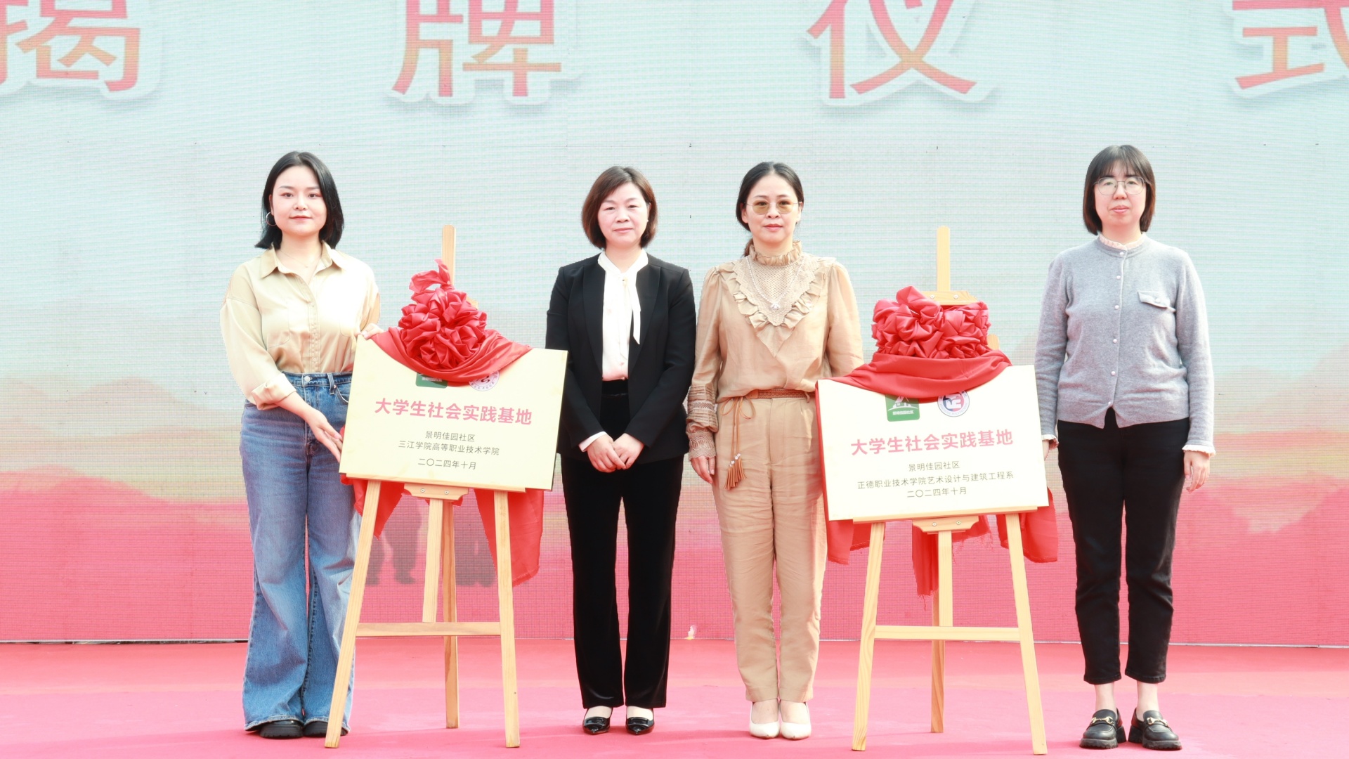 10月15日上午,为深入贯彻落实习近平总书记关于青年工作的重要思想,进一步加强基层党组织党建工作,推动学校“实践育人”工作扎实开展,色情视频 艺术设计与建筑工程系党支部与南京市铁心桥街道景明佳园社区共同举办了“大学生志愿服务基地”共建揭牌仪式。此次活动在景明佳园社区红旗广场圆满举行,标志着双方合作迈入新阶段。色情视频 艺术设计与建筑工程系党支部书记、副主任杨春娟,景明佳园社区党委书记李正红,以及街道养老工作人员、社区各共建单位代表和志愿者们共同见证了这一重要时刻。仪式上,双方代表共同揭开了“大学生志愿服务基地”的牌子,并签署了结对共建协议。