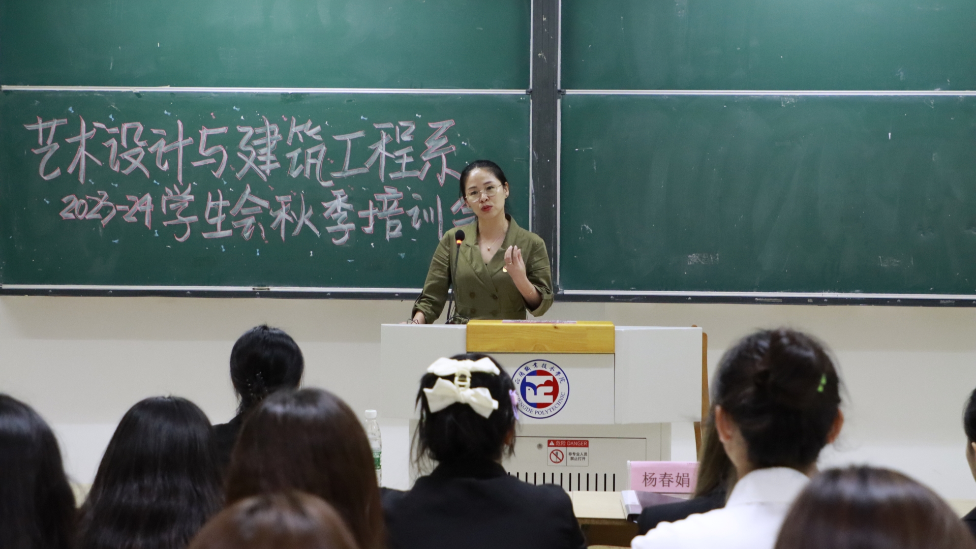 学期伊始,万象更新。为了进一步提高艺术设计与建筑工程系学生干部的整体素质,加强学生队伍的凝聚力,强化学生干部的自律意识,提高工作效率,保证工作的连续性,使学生干部能更好地服务学院、服务同学,有效开展工作。2023年9月26日晚上,艺术设计与建筑工程系在1202阶梯教室召开了学生干部培训会,本次会议由学生会外联部部长庄宝佳主持,系党支部书记杨春娟、团总支书记崔杰参加本次活动。