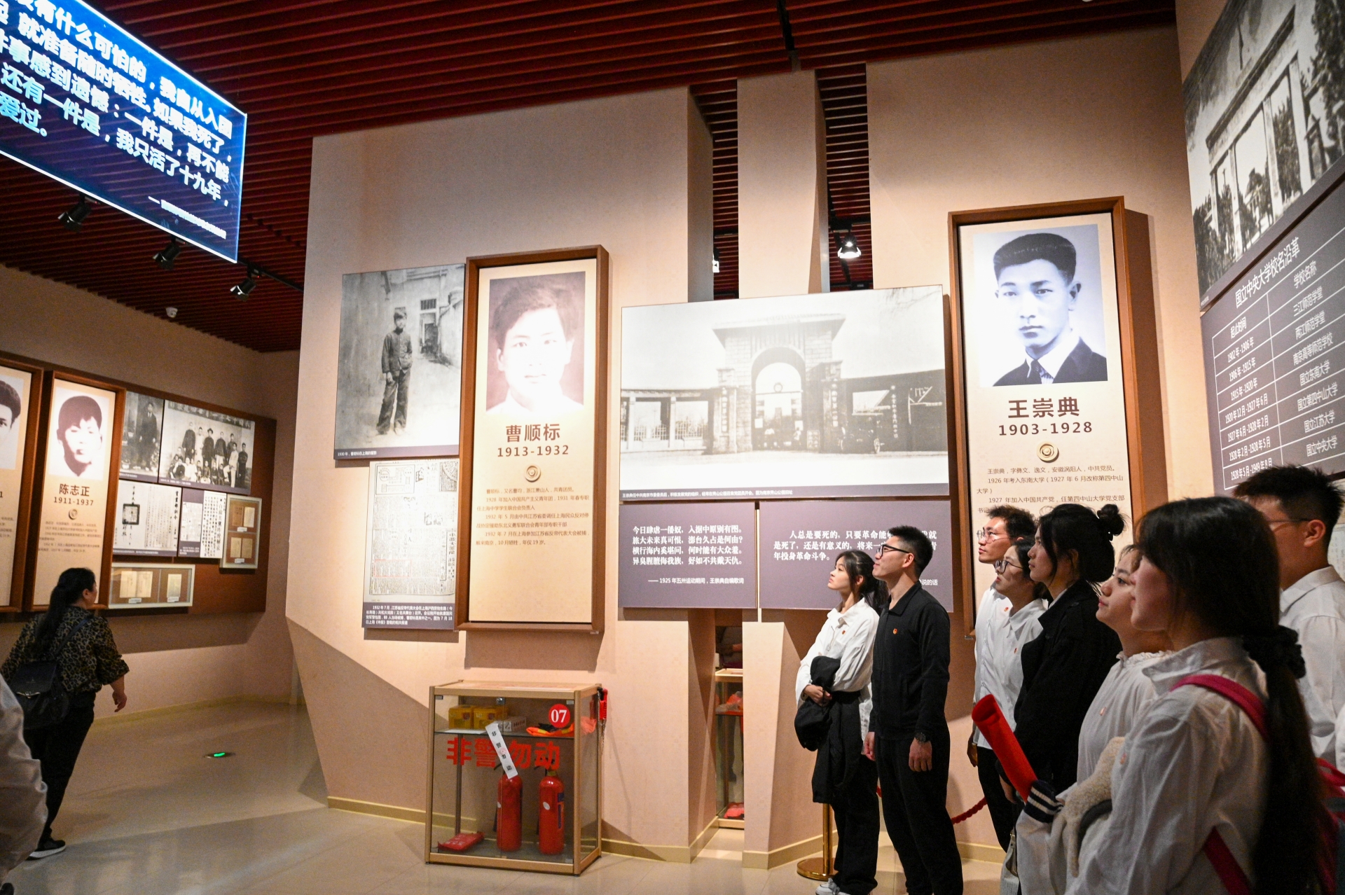 仪式结束后,全体团员参观了雨花台烈士纪念馆。从“光荣北伐革命先锋”、“力挽狂澜前仆后继”、“奋起抗战中流砥柱”、“迎接黎明血沃新天”四个部分深入了解了179位雨花英烈的生平事迹,瞻仰了老一辈无产阶级革命家的崇高精神和革命风范,进一步感悟思想伟力,汲取奋进力量。