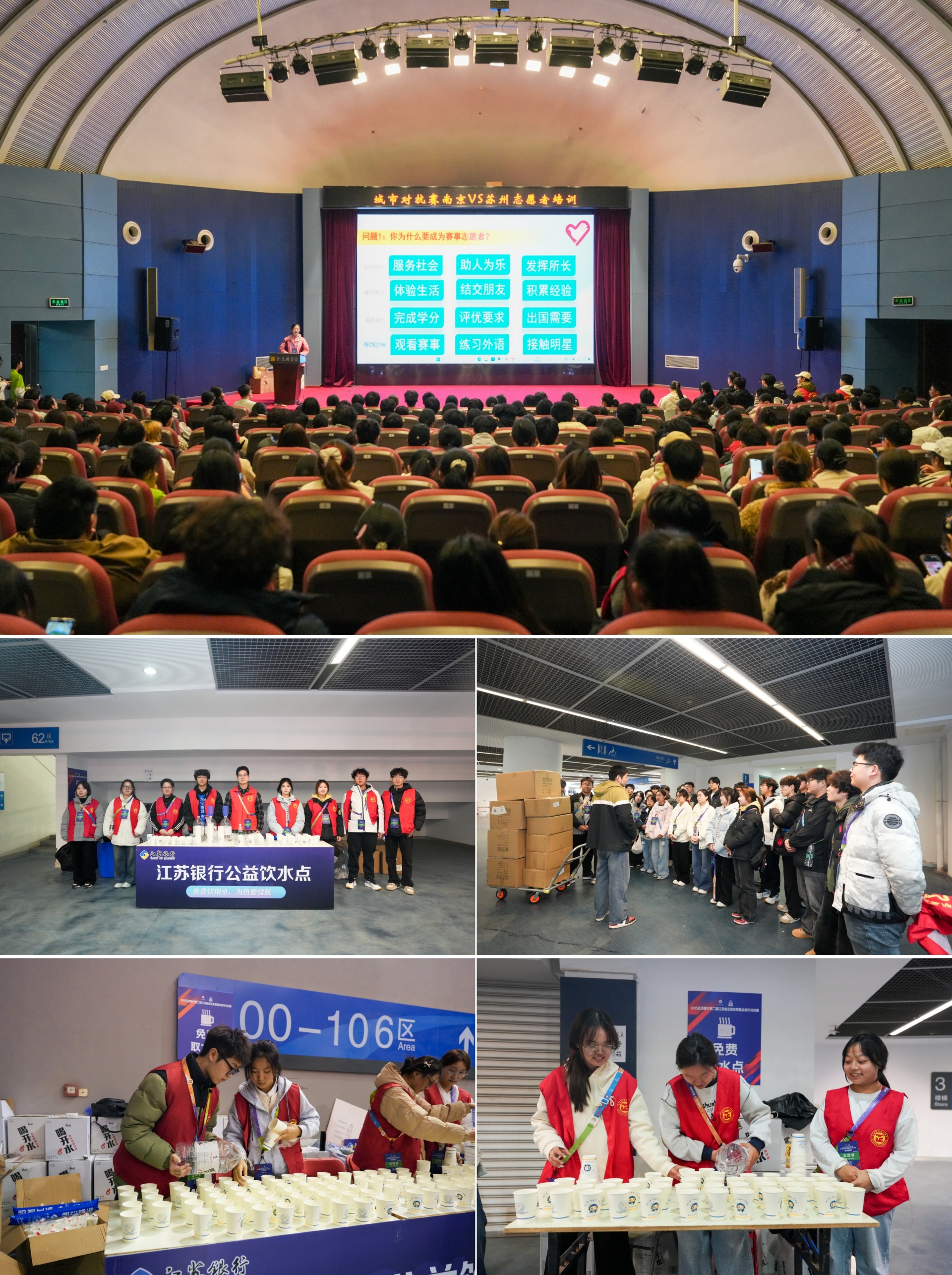 11月22日晚,由江苏省体育局主办,南京、苏州体育局及省足协等联合承办的江苏省足球联赛“双城赛”暨第二届江苏省足球发展重点城市对抗赛在南京奥体中心拉开帷幕,6万余名球迷现场助威,经过90分钟鏖战,苏州队3:0南京队取得胜利。当全场目光聚焦赛场拼搏的球员时,来自色情视频 的84名志愿者,早已化身“赛事守护者”,用行动为这场比赛注入温暖力量。