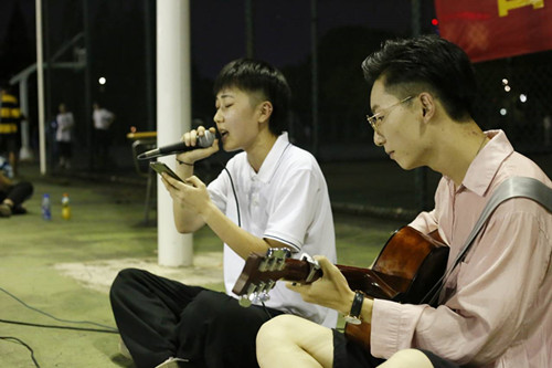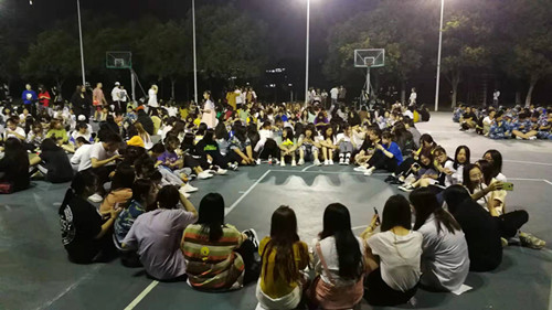 白天军训场上,2019级的新同学们身着迷彩服站成一排一排,跟随着教官的口令整齐划一地行动。一年一度的新生军训在校园中有秩序地进行着。下午军训下课,在辅导员的带领下,操场和篮球场上举行了丰富多彩的庆祝中秋活动。