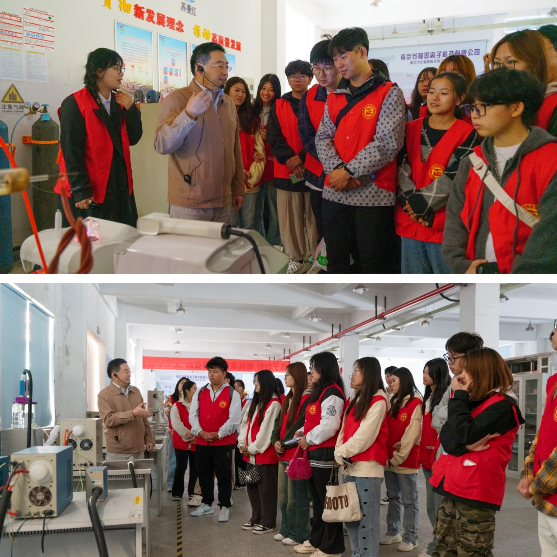 看一家高新企业。南京苏曼等离子有限公司是江苏省民营科技企业,双软企业,低温等离子体工程技术研究中心,江苏省研究生企业工作站。在企业负责人的讲解和演示下,同学们对等离子技术有了更直观的感受,进一步感知科教兴国、人才强国、创新驱动、乡村振兴发展战略,激发肩负使命、勇挑重担、开拓进取的学习热情。
