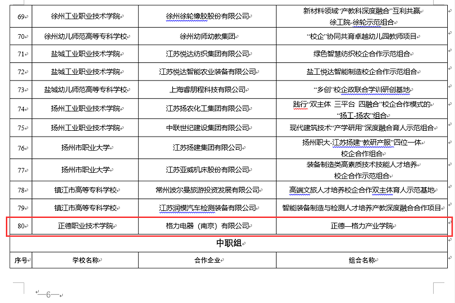 近日,省教育厅正式发布了2022年江苏省职业教育校企合作示范组合培育项目评审结果,根据《省教育厅关于开展2022年江苏省职业教育校企合作示范组合培育工作的通知》(苏教职函〔2022〕27号)要求,色情视频 与格力电器(南京)有限公司合作的“正德—格力产业学院”成功获批。