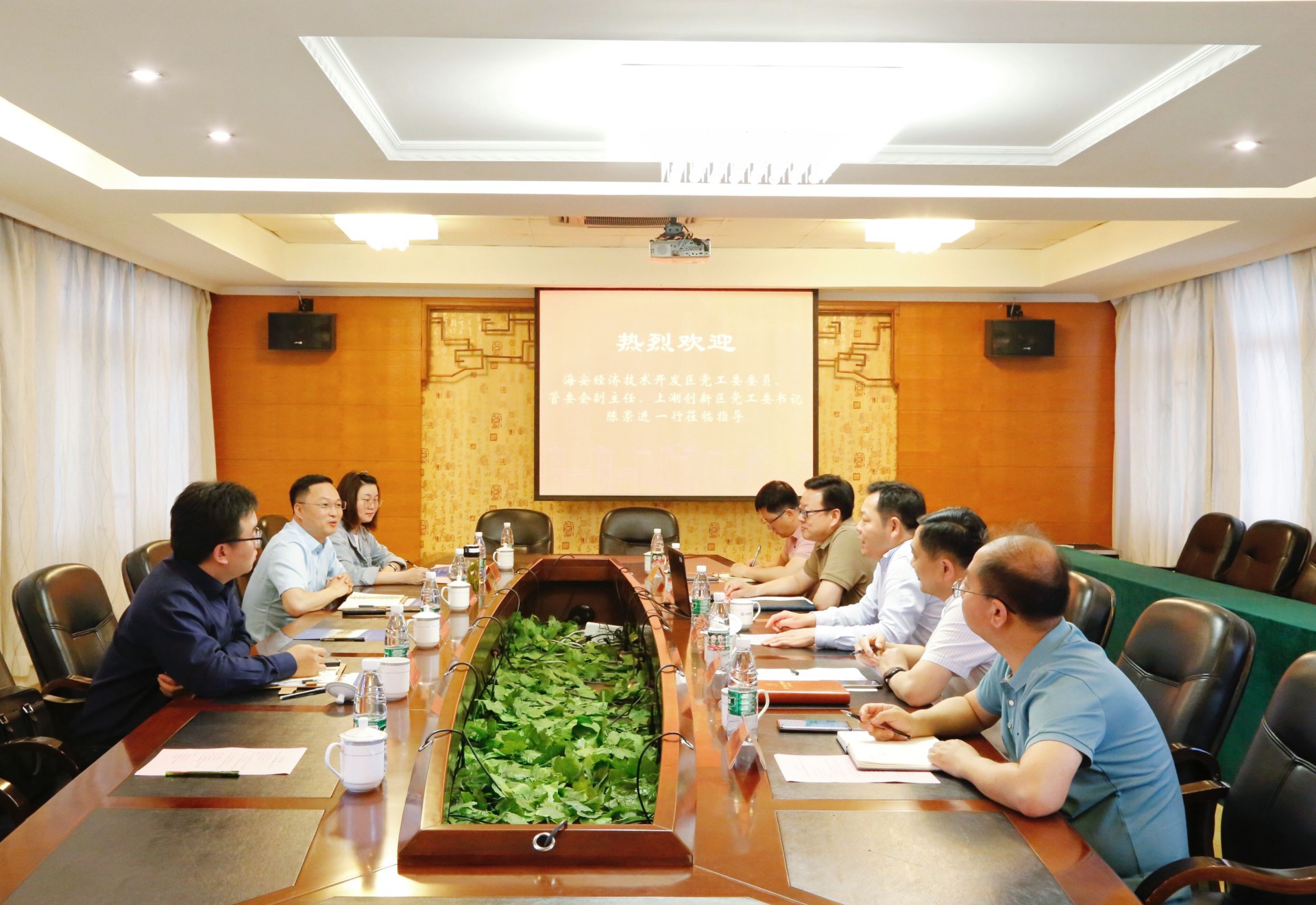 马守军介绍了海安上湖创新区的基本情况,就上湖创新区科技创新创业、招商人才引进、产业工人队伍建设政策进行了解读,表示将充分发挥创新区的桥梁作用,强化校企合作,推动产学研深度融合。双方就学历提升、订单班培养、产业工人培训等方面进行了深入探讨和交流,并希望双方能够合力探索更多的合作新路径。