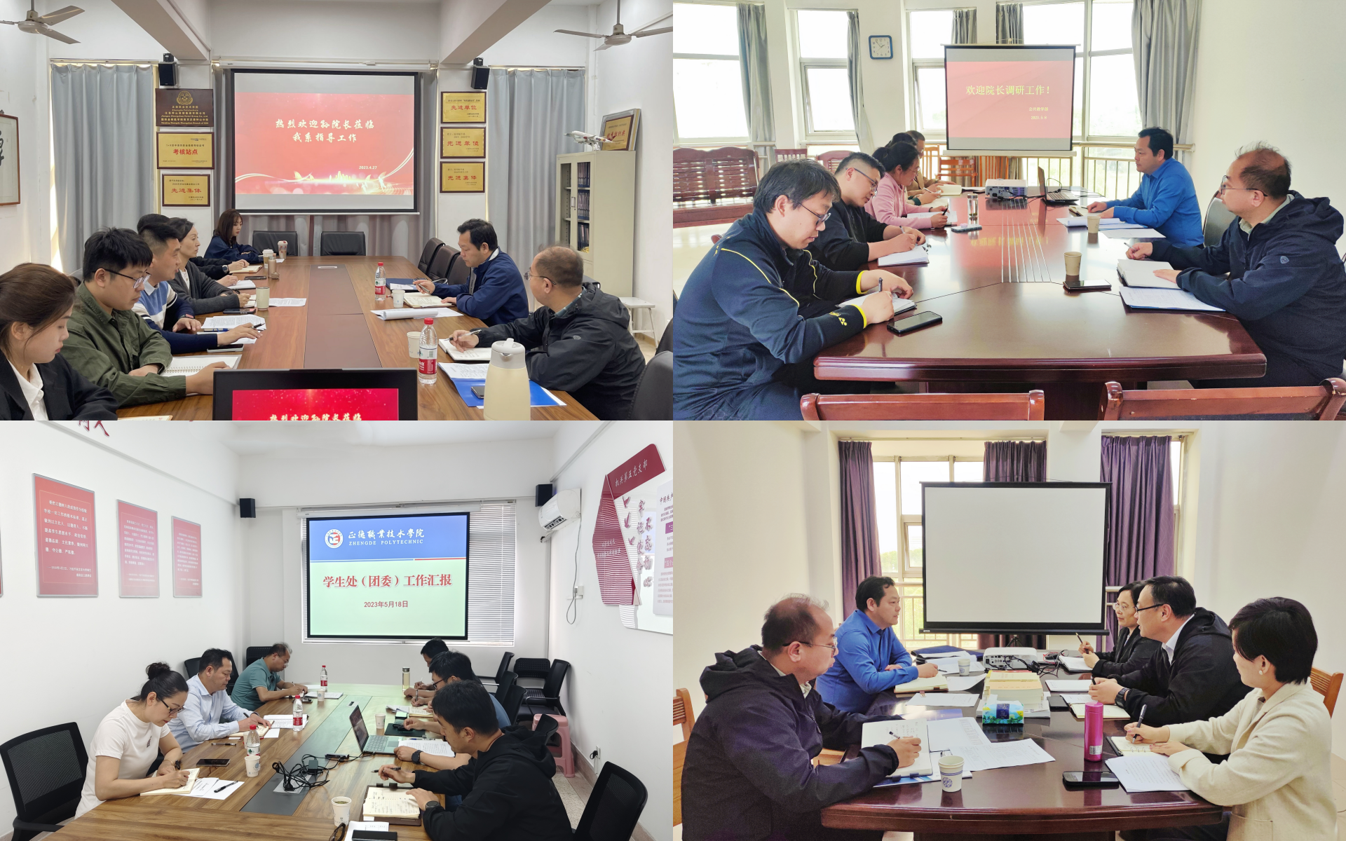 近日,院长孙永荣通过召开座谈会、实地查看等方式,深入教学系部、职能部门开展走访调研。副院长高斌、江爱华、赵凯雷、梁薇分别陪同参加了有关调研。