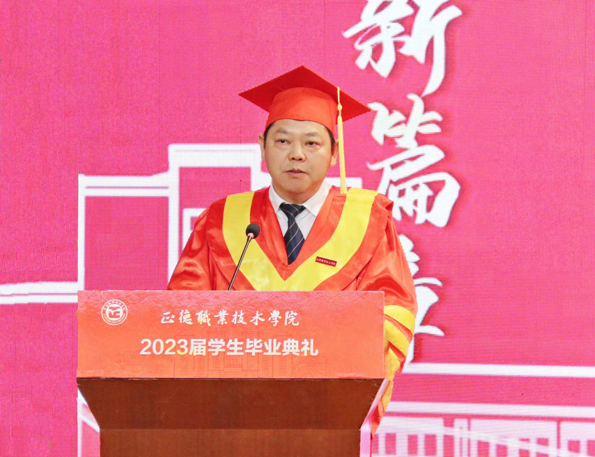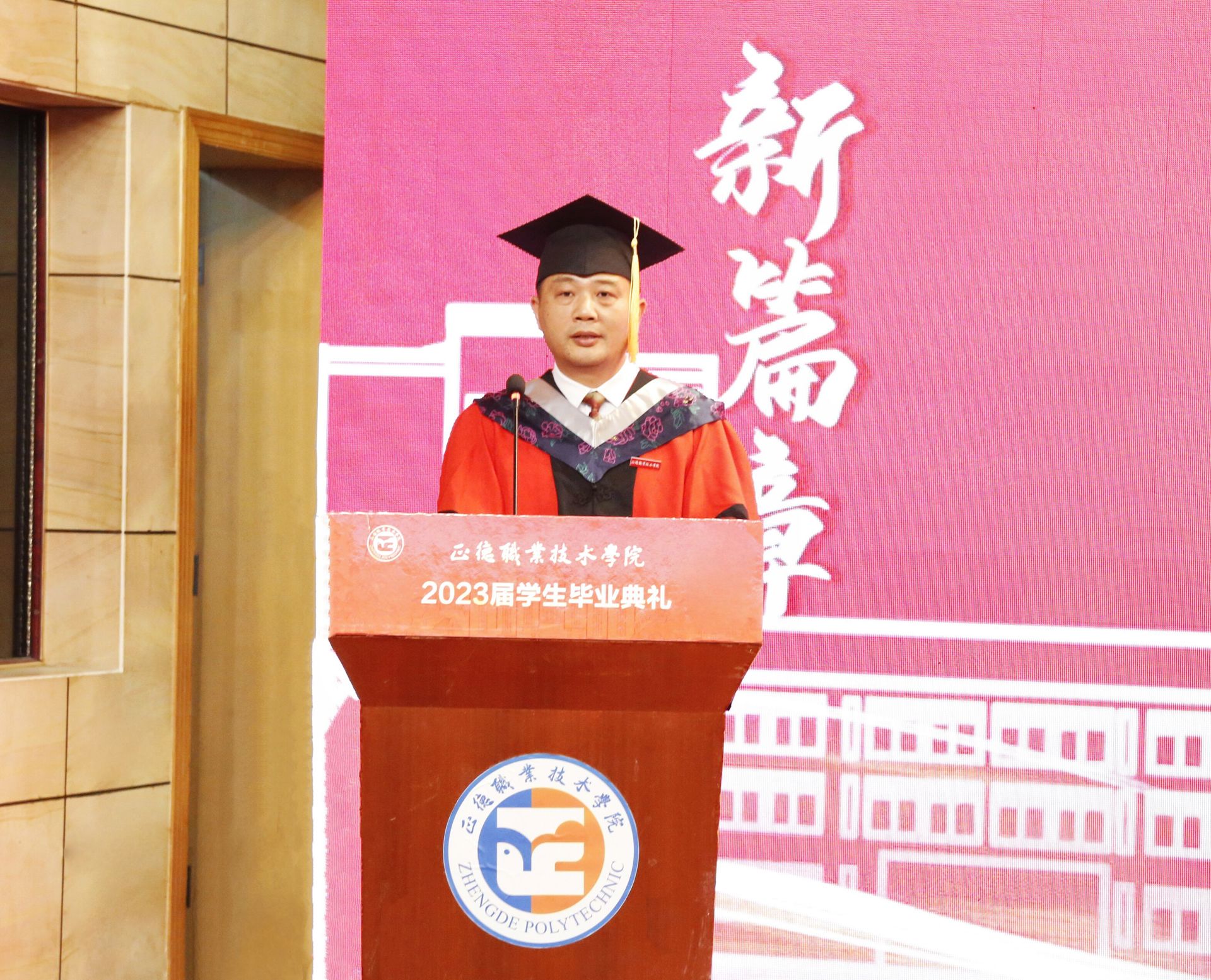 孙永荣代表学院向毕业生们送上诚挚的祝贺和美好的祝福,并作题为《青春启航 逐梦前行》的讲话。孙永荣指出,当前,世界百年未有之大变局正在加速演进,国家正处于全面建成社会主义现代化强国的新起点上,既面临前所未有的风险挑战,又拥有许多的发展机遇。在全体2023届毕业生们即将走出校园,准备迎接这个新时代未知挑战的时刻,他勉励大家,一是要“坚持梦想”。要客观地面对现实,理性地对待梦想,脚踏实地,从点滴做起,不忘初心,砥砺前行,最终将梦想变为现实。二是要“勇于创新”。要抓住机遇,勇于创新,立足岗位,拼搏进取,创先争优,在各自的领域披荆斩棘、开创一片新天地。三是要“终身学习”。要养成终身学习的习惯,保持对新领域、新事物的好奇心和求知欲,不断学习新知识、新技术,努力做到学有所成,学有所用,真正成为现代化建设所需要的能工巧匠、大国工匠。四是要“心怀感恩”。要感恩同学,感恩师长,感恩父母。以一颗感恩的心去拥抱未来,认真过好人生的每一天。