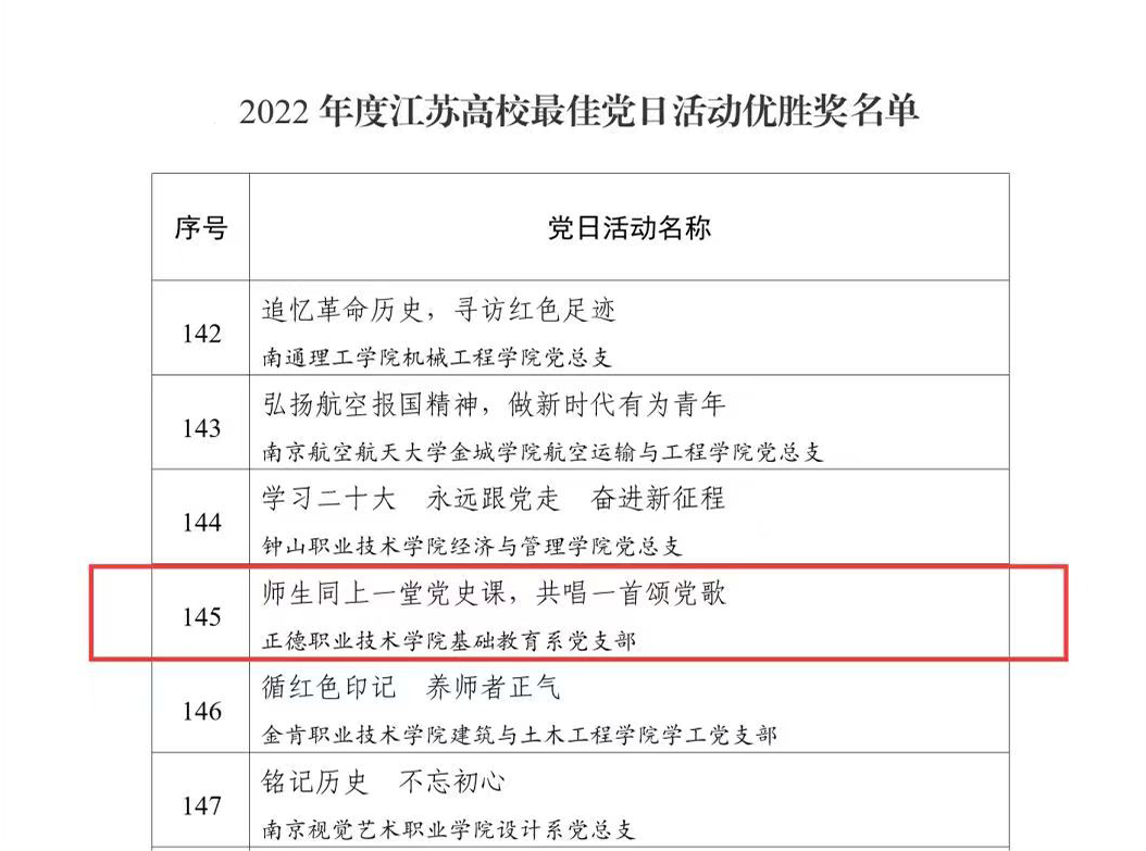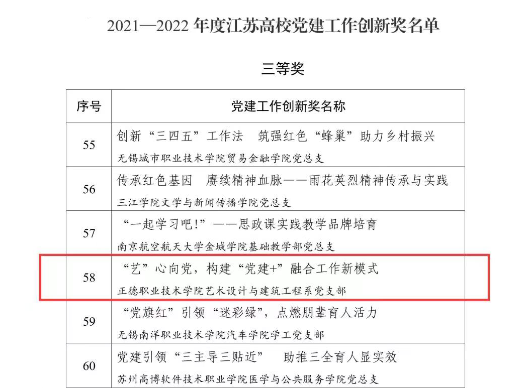 日前,江苏省委教育工委公布了江苏高校2021—2022年度党建工作创新奖和2022年度最佳党日活动优胜奖的评选结果,色情视频 艺术设计与建筑工程系党支部的“‘艺’心向党,构建‘党建+’融合工作新模式”荣获江苏高校党建工作创新奖三等奖,基础教育系党支部的“师生同上一堂党史课,共唱一首颂党歌”荣获江苏高校最佳党日活动优胜奖。