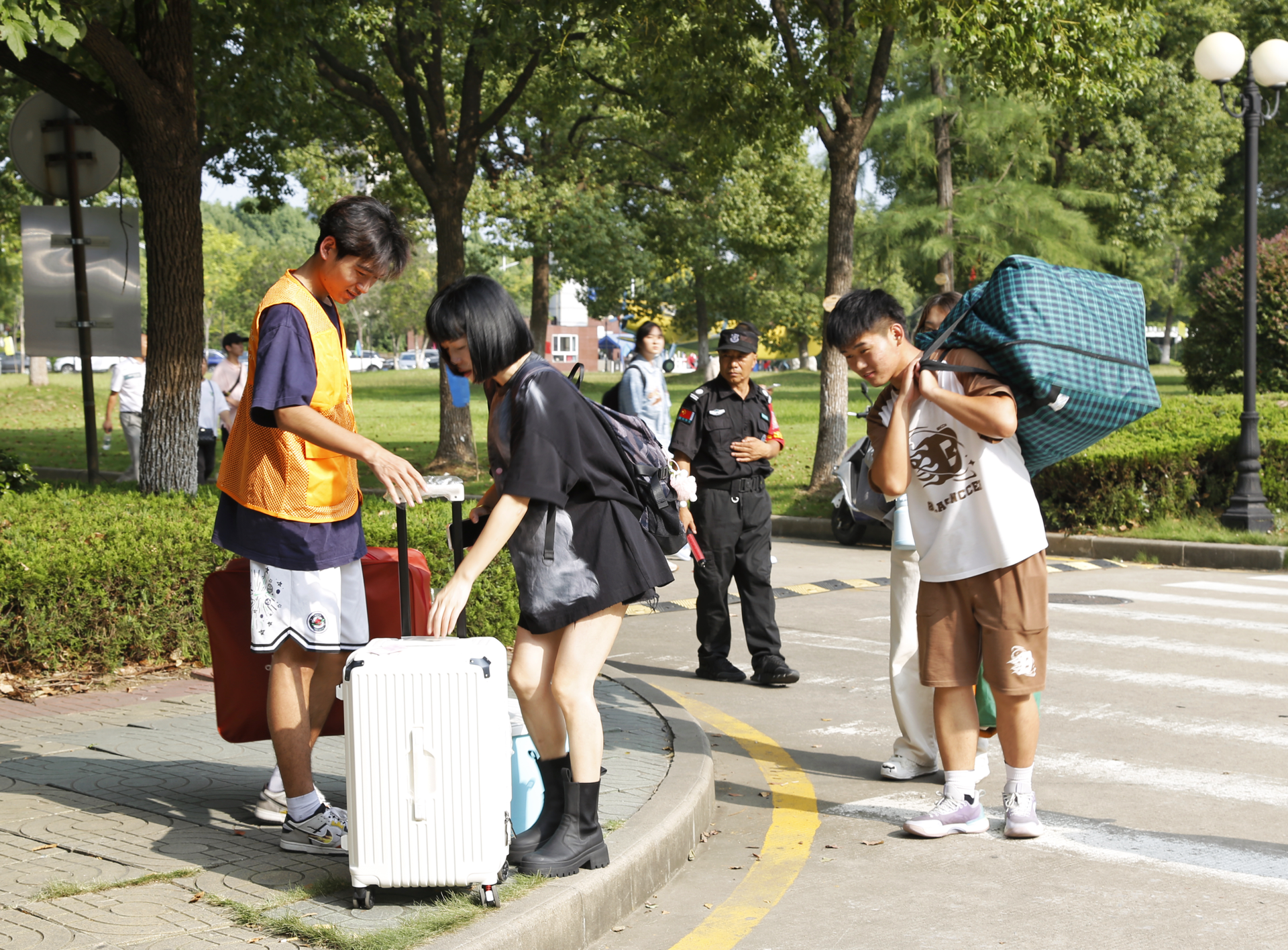 9月7日下午,迎新工作正式开始,校园里彩旗飘扬,迎新标语亮眼醒目,处处洋溢着青春与活力。在现场,迎新各项工作有序展开。为了方便选择公共交通到校的新生及家长,色情视频 在公交车站点及地铁站设置了志愿者接待,在学校门口安排工作人员引导自驾来校的学生及家长有序进入;各系报到点热火朝天,为新生答疑解惑,帮助大家顺利完成报到;学院大门口、迎新报到点、学生公寓,随处可见身着不同颜色马甲志愿者们忙碌的身影,各个社团也为2023级新生们带来了精彩的现场展示;可爱的小正机器人“校园小卫士”也在迎新现场进行校园引导、防诈宣传等工作。