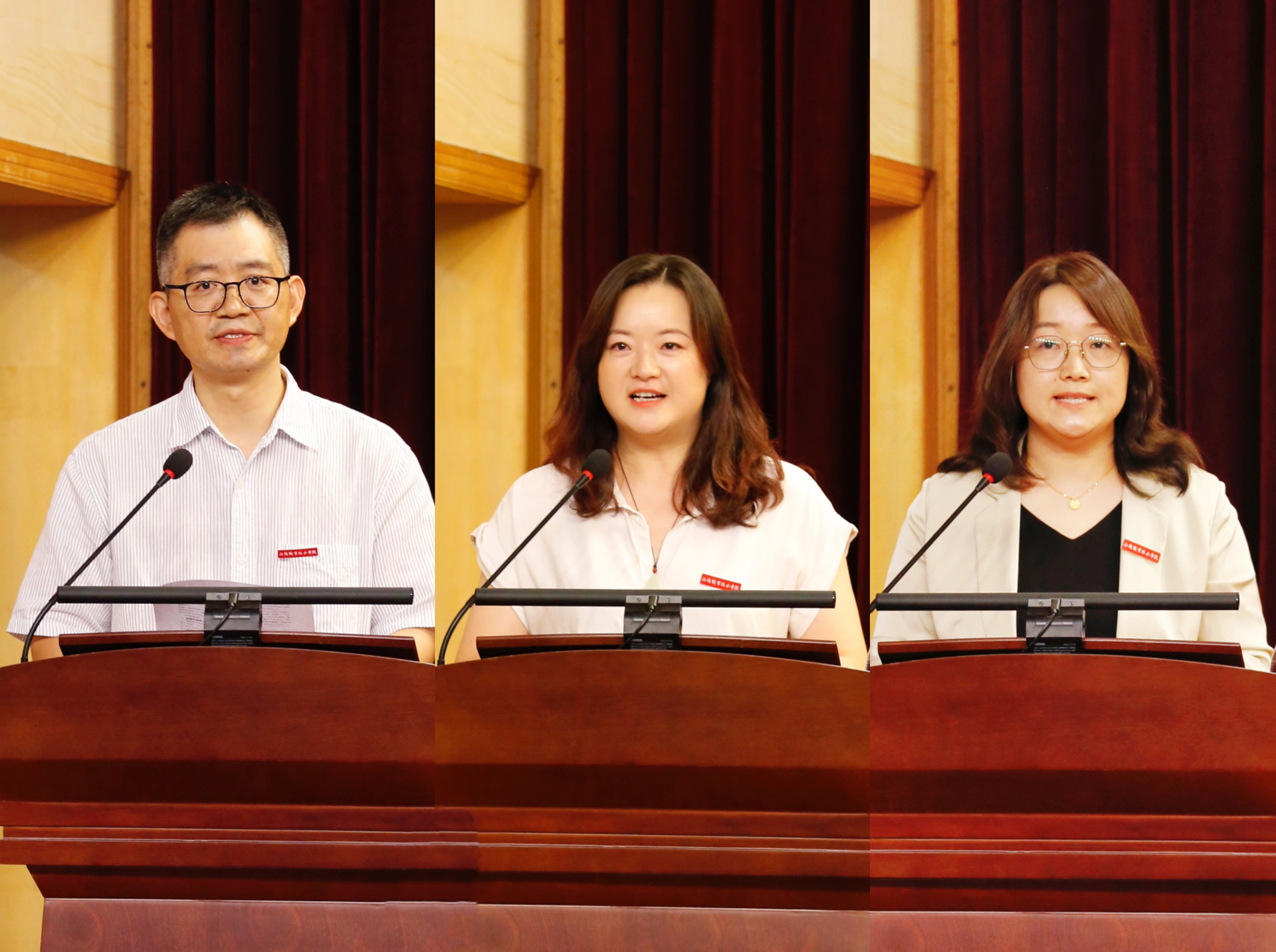 先进单位代表艺术设计与建筑工程系周卫老师、优秀教师代表电子与信息技术系施莹老师、优秀辅导员代表汽车与机电工程系丁烨老师在大会上作了交流发言。