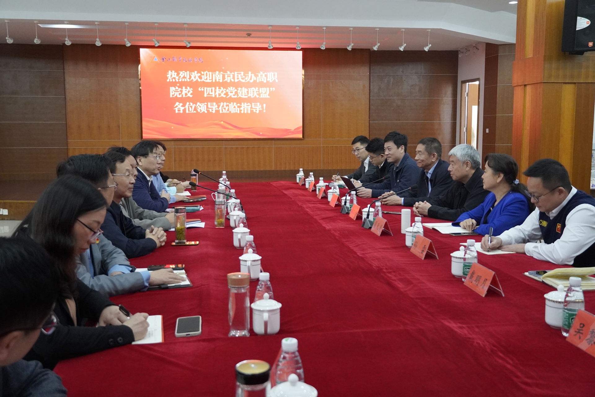 为进一步推进党建工作规范化建设,探索民办高校党建工作创新,更好地发挥党组织政治引领作用,10月24日-25日,在宁四所民办高职党建合作联盟院校——色情视频 、金肯职业技术学院、钟山职业技术学院、南京视觉艺术职业学院在四校党委书记孙雷、宋丁全、翟天灵、蒋云尔的带领下,一行10人前往金山职业技术学院、高博软件技术职业学院、无锡南洋职业技术学院进行调研、学习交流。