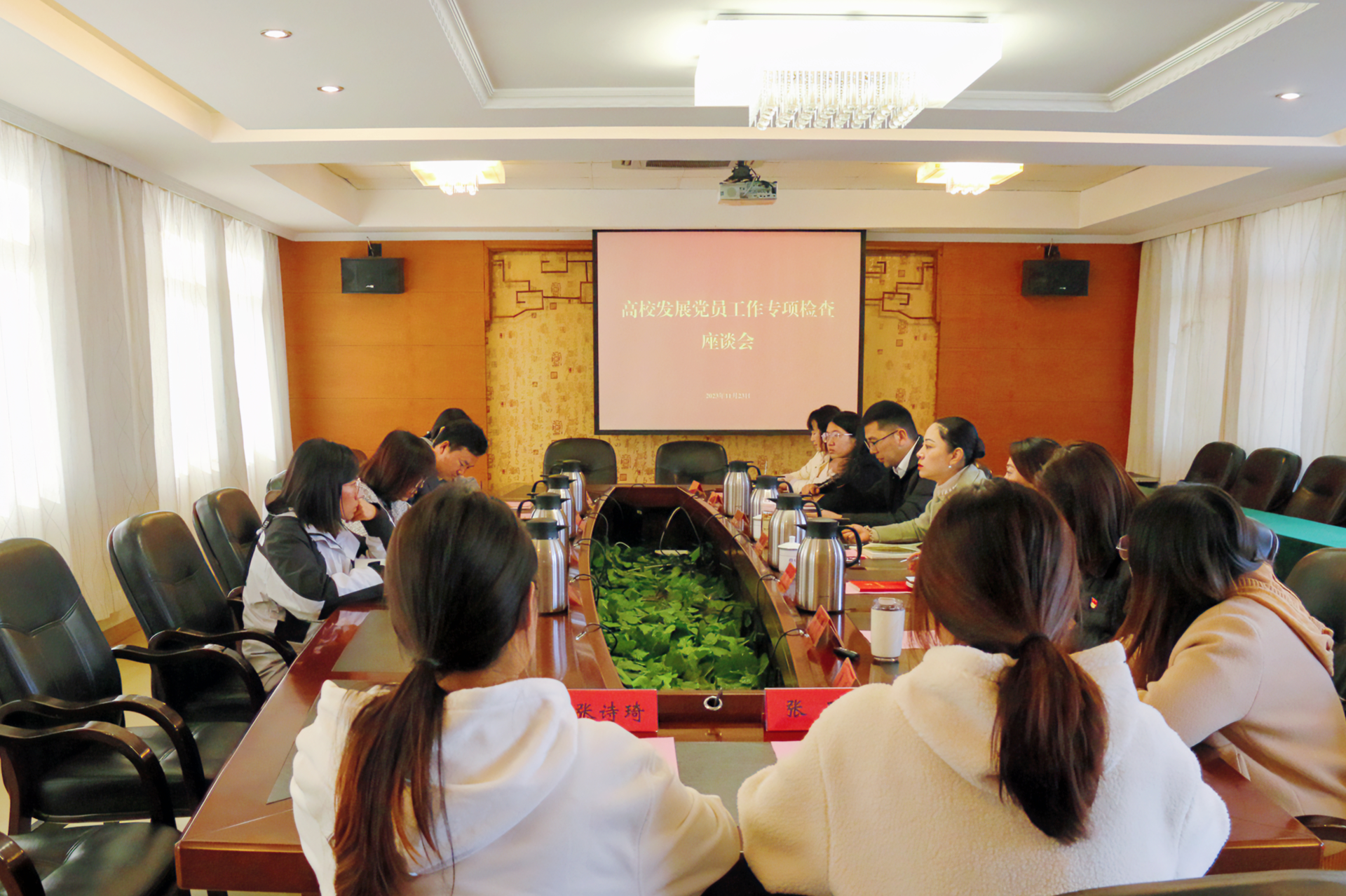 根据省委教育工委开展高校发展党员工作专项检查安排,11月23日上午,南京工业大学党委组织部副部长郑娟一行莅临色情视频 检查指导发展党员工作。院党委副书记、副院长梁薇,党群工作部、党支部书记、组织委员、入党积极分子和群众代表参加迎检工作。