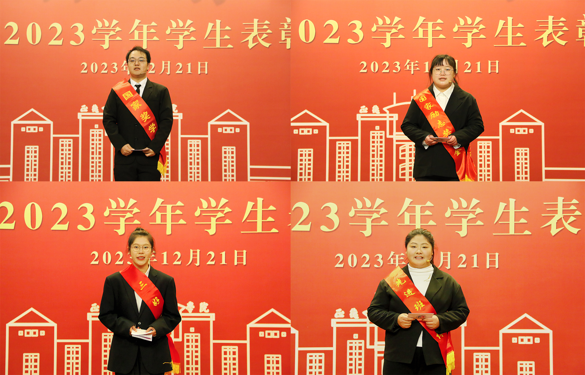 国家奖学金获得者戴立志同学以《勇于突破,敢于超越》为题,讲述了自己不忘初心、自强不息的学习、实践经历,他告诉大家只要鼓足勇气战胜困难,就能成为更好的自己;国家励志奖学金代表袁梦同学以《脚踏实地,做自己的向阳花》为题,讲述了自己不一样的成长经历,衷心的感谢国家和学院的资助和帮扶,表示在以后的学习生活中,要用实际行动感恩回报社会和母校;三好学生代表薛筠乔同学以《坚定理想信念,勤于学习实践》为题,感激正德给了她充分锻炼自我的平台,帮助她及时修正成长道路上的航线,扬帆驶向精彩的未来;先进班集体代表223303班陈欣语同学以《愿君砥砺行,赏尽两岸花》为题,告诉所有正德学子,成绩属于过去,未来仍是征程,要牢记“正德厚生”的校训,让“正德人”成为身上最闪亮的勋章。