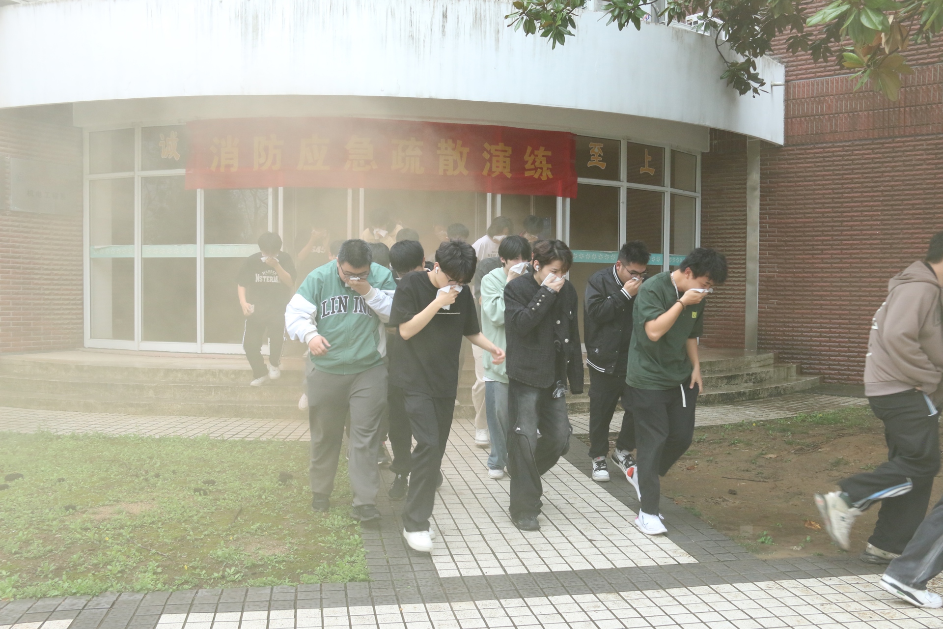 经过详细论证和实地考察,后勤保卫处联合教务处、学生处、汽机系设置演练有关环节。下午15点40分,高斌宣布演练开始,工作人员在7号教学楼施放发烟装置,模拟火灾发生时的场景。正在巡查的物业管理人员发现“火情”,立即拔打校园报警电话,并迅速打开疏散通道,组织正在上课的学生们有序安全撤离。同时接到报警后,校卫队队员迅速赶到起火位置处置扑救初起火情,防止火势蔓延。在疏导员的指挥下,同学们安全撤出前往楼下空旷地带列队集合,任课老师清点人数,校卫队员最后对现场进行搜索确定无人员滞留,演练到此结束。