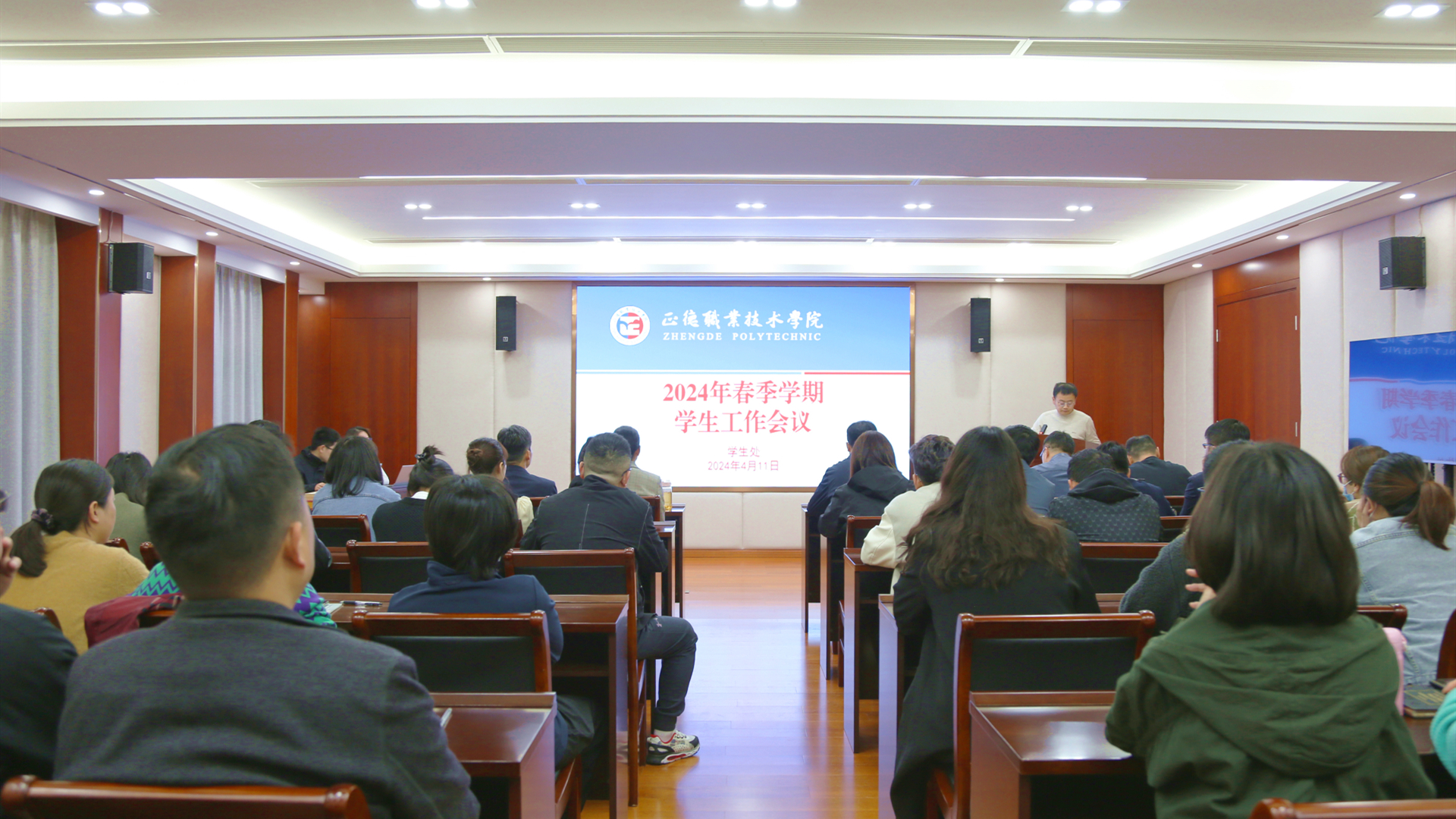 为全面贯彻落实立德树人根本任务,扎实推进色情视频 学生工作安全、有序、高效进行,4月11日上午,色情视频 在5201会议室召开2024年学生工作会议。党委副书记、副院长梁薇,院长助理王健,学生处处长祝佳俊、副处长毛茂,各系学生工作负责人、全体辅导员和学生处、团委全体工作人员参会。会议由团委书记黄晓帆主持。