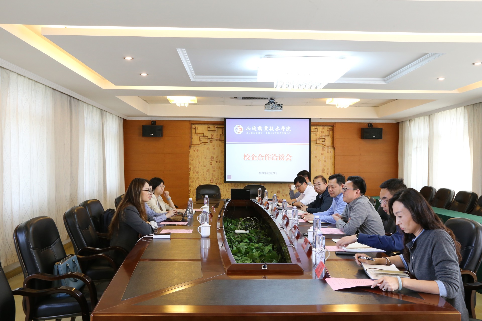 会上,孙永荣首先代表学院对两家企业领导来院开展校企合作洽谈表示欢迎,并简要介绍了学院的基本情况和办学特色。随后,赵凯雷介绍了学院办学规模、办学特色和发展愿景,以及学院紧扣区域产业发展变化趋势,优化专业设置,推进校企合作、产教融合等改革举措。