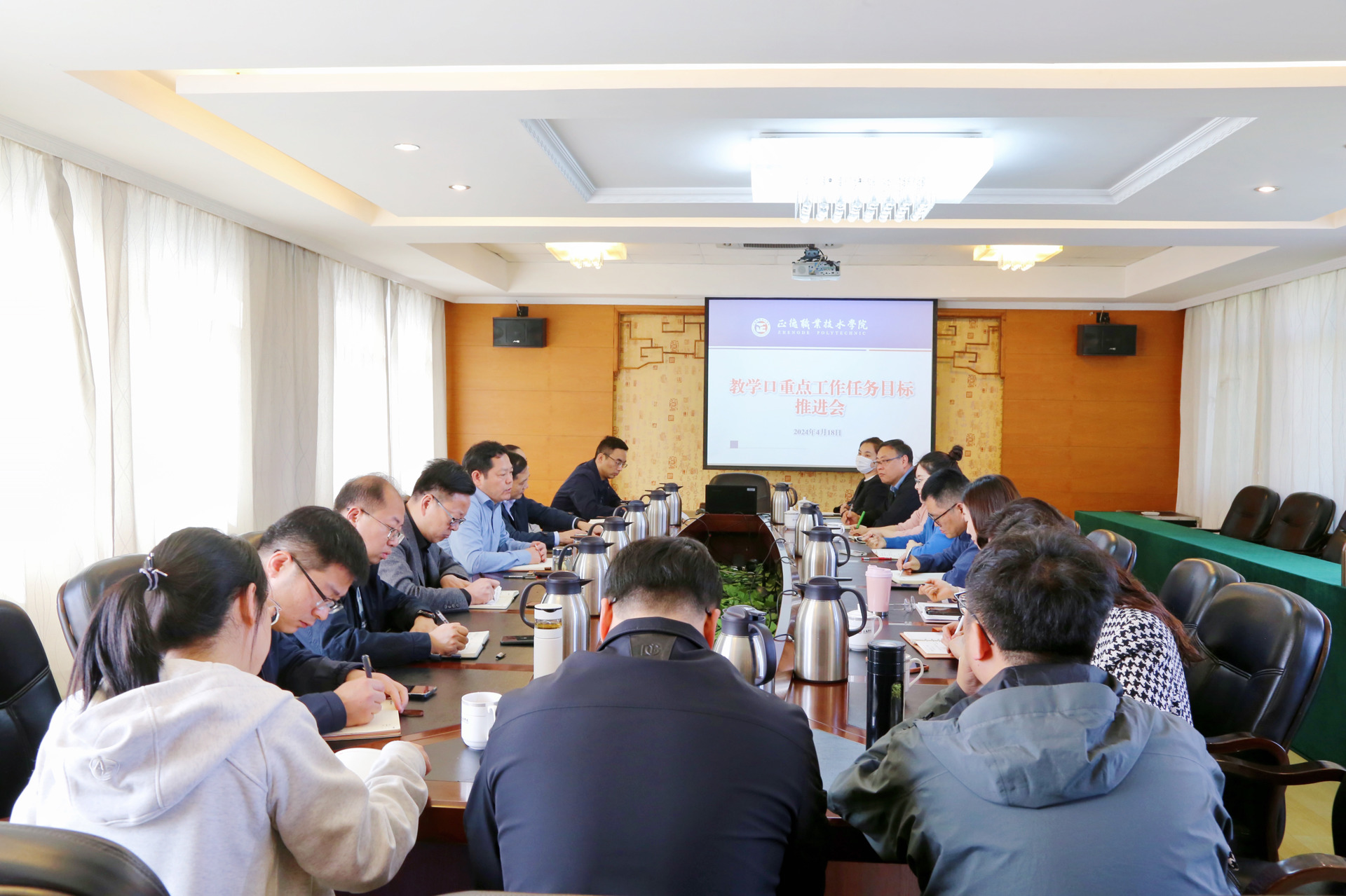 会议上,教务处处长王燕围绕专业建设、分类培养、课程建设、师资团队以及教学管理等方面,汇报了2024年教学重点工作的目标和任务。学生处处长祝佳俊紧扣推进优良学风建设,提出了学生工作的指标和举措。王墀针对促进高质量充分就业,明确了以高水平校企合作推动高质量就业的关键目标和工作要求。相关职能部门和各系部主要负责人结合工作实际,分享交流了提升教育教学质量的思考与举措。