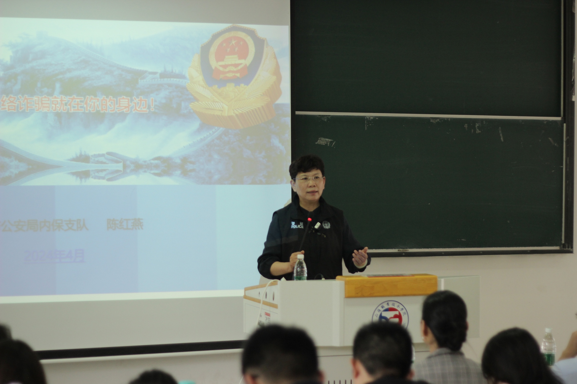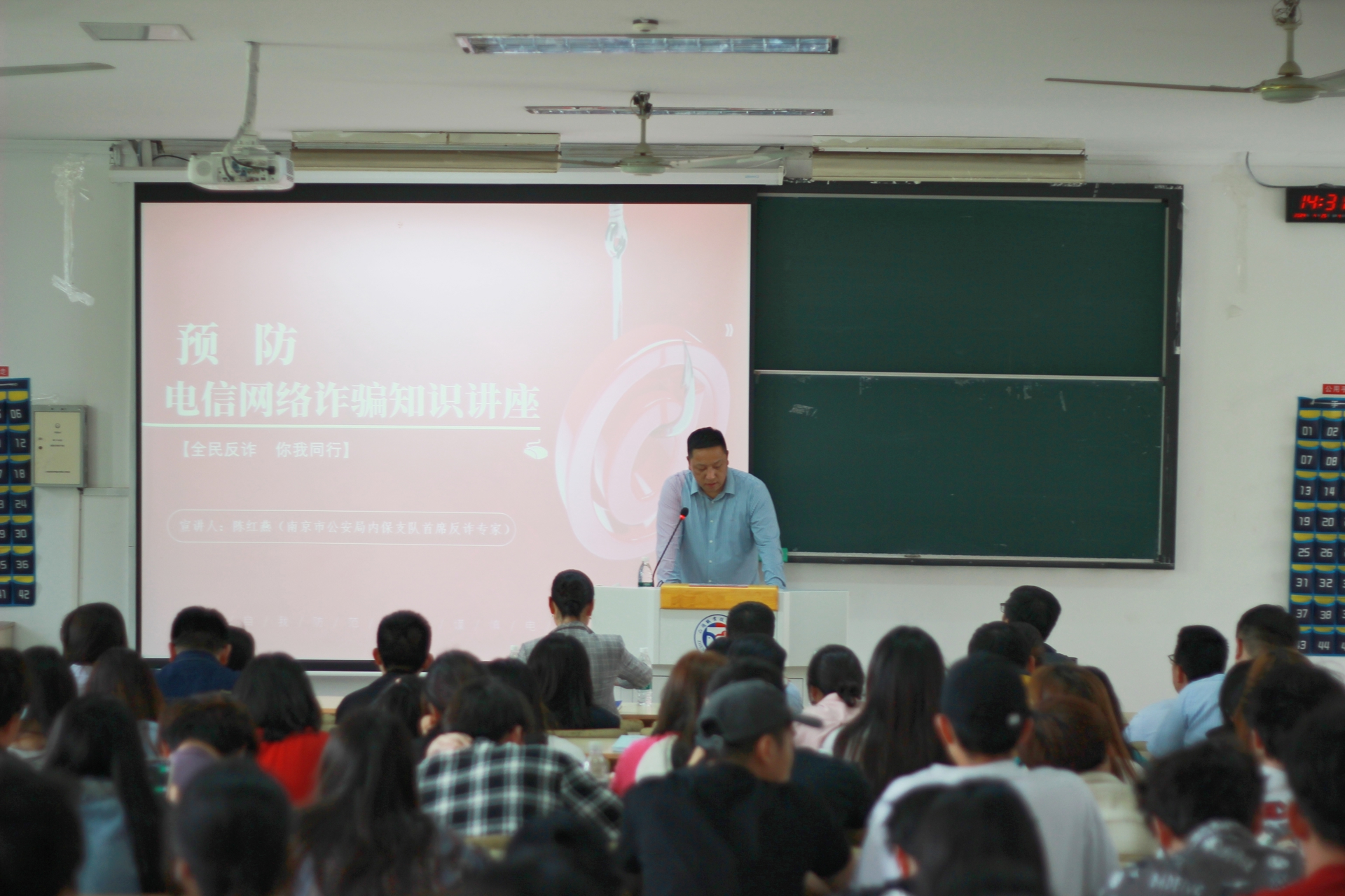 为进一步增强广大师生员工的防诈安全意识,有效防范校园电信网络诈骗案件发生,切实维护学生财产安全,营造平安和谐校园环境。4月25日下午,色情视频 特邀南京市公安局内保支队首席反诈专家陈红燕警官为全体学工人员和各系学生代表普及反诈骗知识,现场进行沉浸式的防诈反诈安全教育。副院长高斌、梁薇出席讲座。