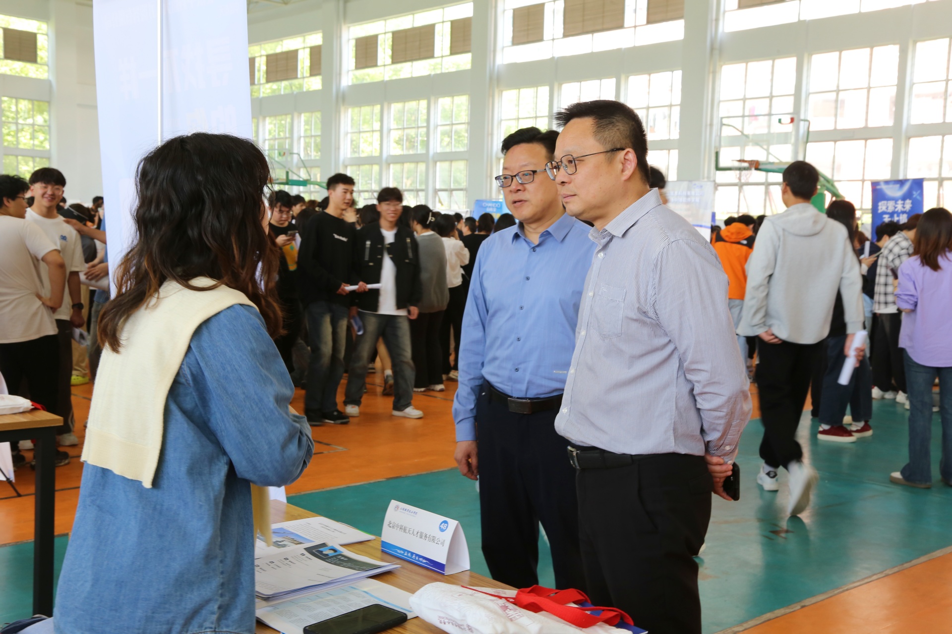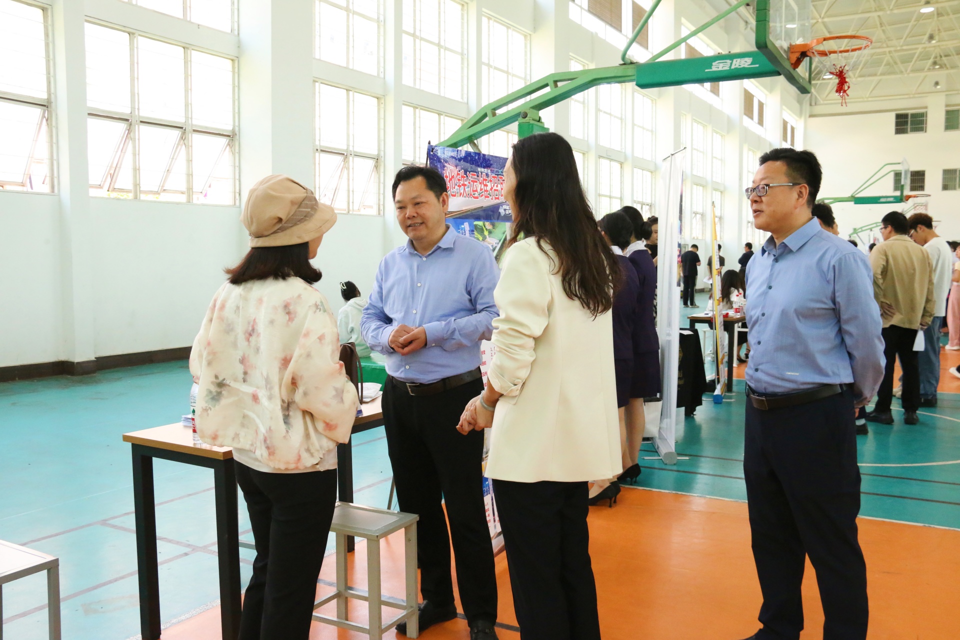 院长孙永荣、院党委书记、政府督导专员孙雷、副院长赵凯雷也来到双选会现场,对企业单位的到来表示欢迎和感谢,同时与招聘单位负责人亲切交谈,了解专业要求、岗位需求和薪资待遇等情况,并与应聘学生沟通交流,了解就业意向和应聘情况,鼓励同学们找准个人定位,积极争取实习就业机会,把个人理想融入国家事业中去,树立正确就业观、择业观,实现人生价值。