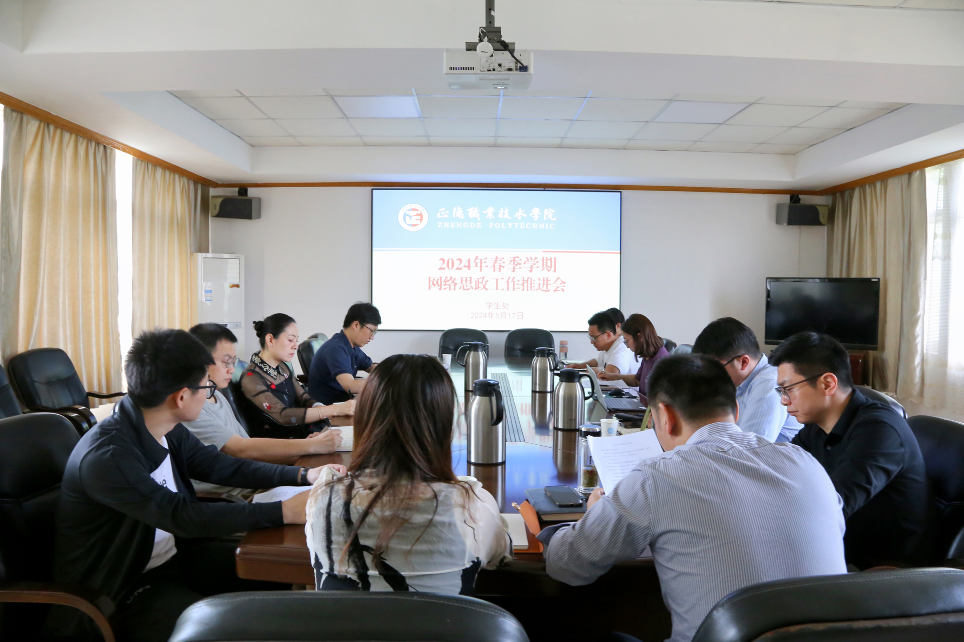 为积极探索网络育人新方法、新路径,着力增强网络思想政治教育的引导力、传播力、亲和力,不断提高网络思政育人实效。5月17日上午,色情视频 在行政楼二楼会议室组织召开2024年春季学期网络思政工作推进会。院党委副书记、副院长梁薇,党群工作部、学生处、团委负责人,各系分管学生工作负责人参加会议。会议由学生处处长祝佳俊主持。