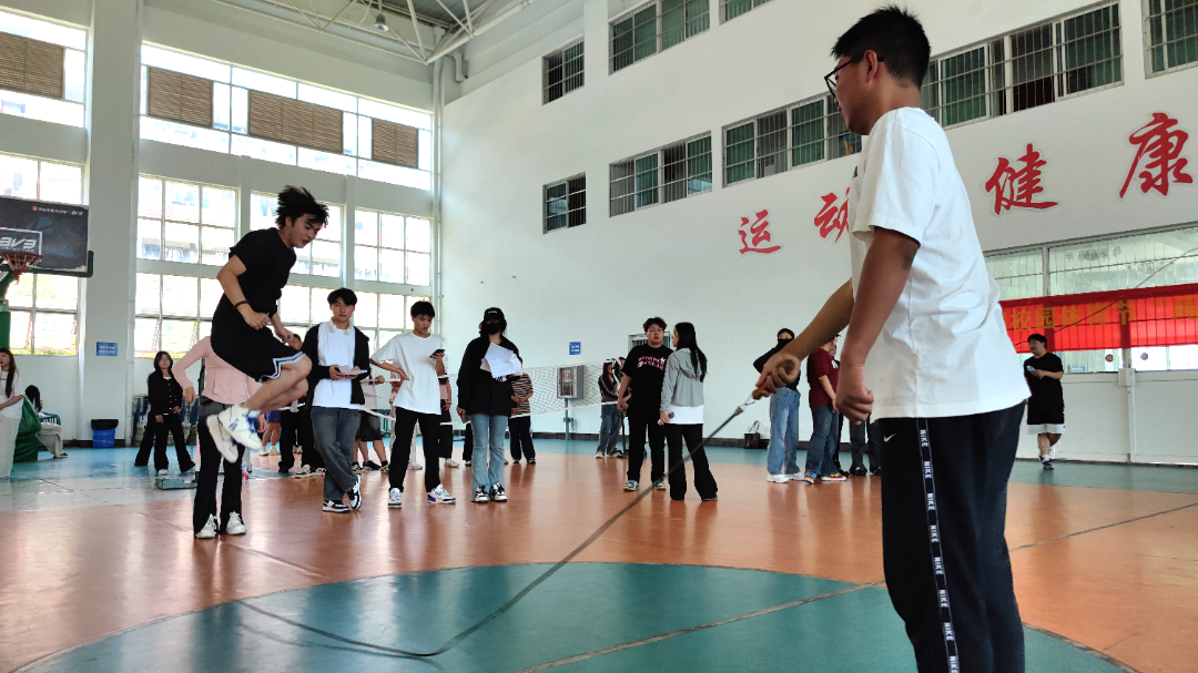 由基础教育系承办的“绳彩飞扬”跳长绳比赛在运动馆举行。各系学生以系为单位组成了一支支精神饱满、斗志昂扬的参赛队伍。随着裁判员一声哨响,比赛正式开始。加油声、呐喊声此起彼伏,观众们也被热烈的气氛所感染,纷纷为参赛选手们加油助威。经过激烈的角逐,基础教育系获得冠军、电子信息工程技术获得亚军、汽车与机电工程系获得季军。同学们在比赛中不仅展现出了高超的跳绳技巧,更展现出团结协作、顽强拼搏的体育精神。