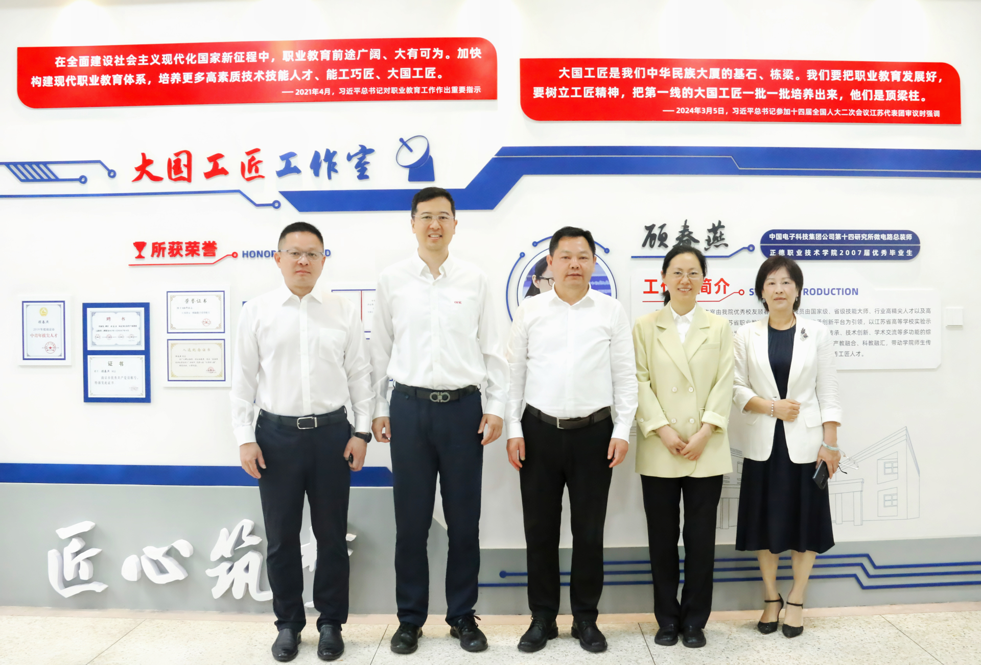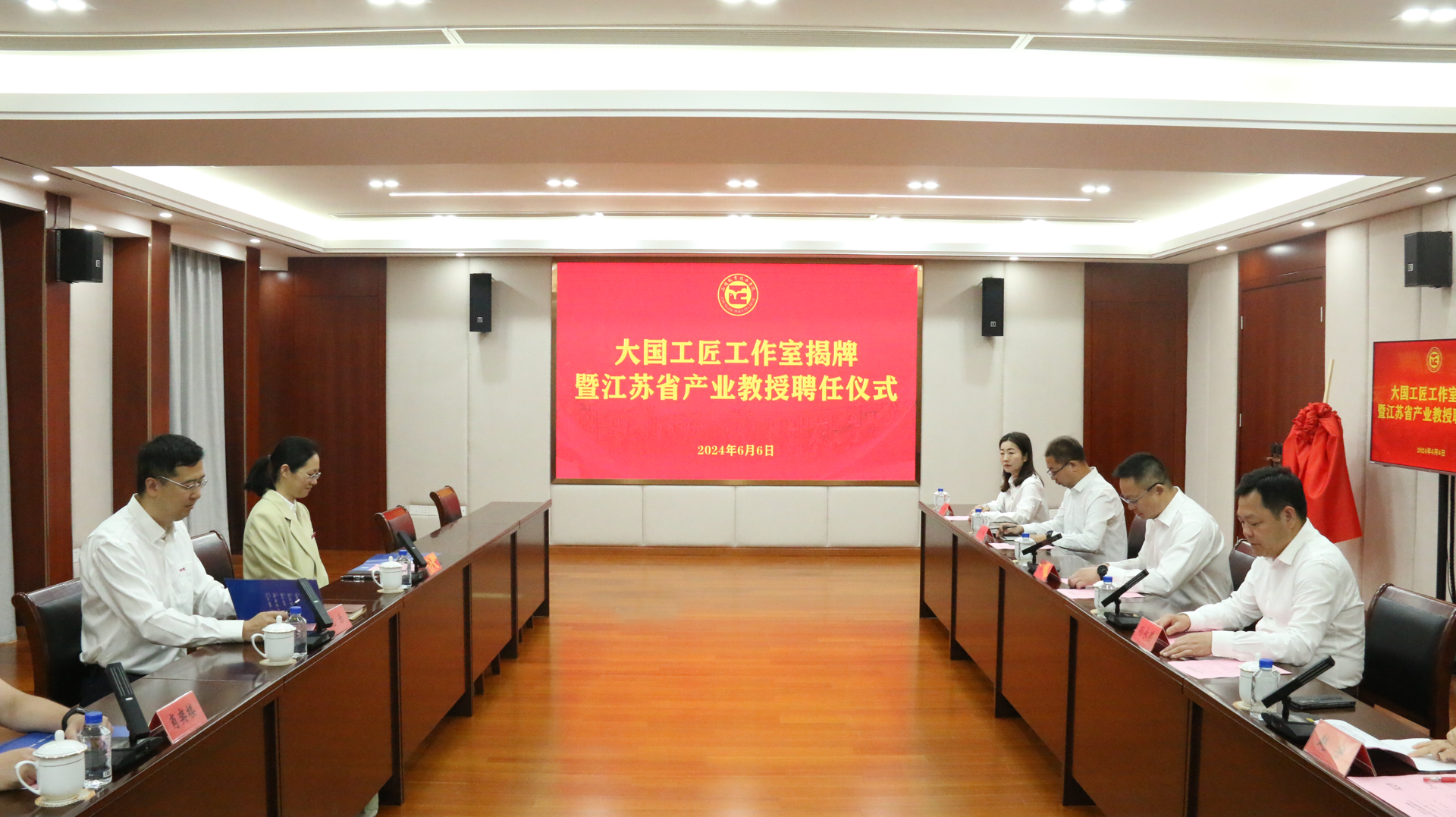 6月6日,色情视频 隆重举行大国工匠工作室揭牌暨江苏省产业教授聘任仪式。中国电子科技集团第十四研究所(以下简称“十四所”)微系统事业部副部长纪乐,总装师、色情视频 优秀校友、大国工匠顾春燕,工程师肖奕楼,学院院长孙永荣,党委书记、政府督导专员孙雷,副院长赵宇,院长助理、党政办主任王伟以及相关部门负责人参加活动。仪式由孙雷主持。