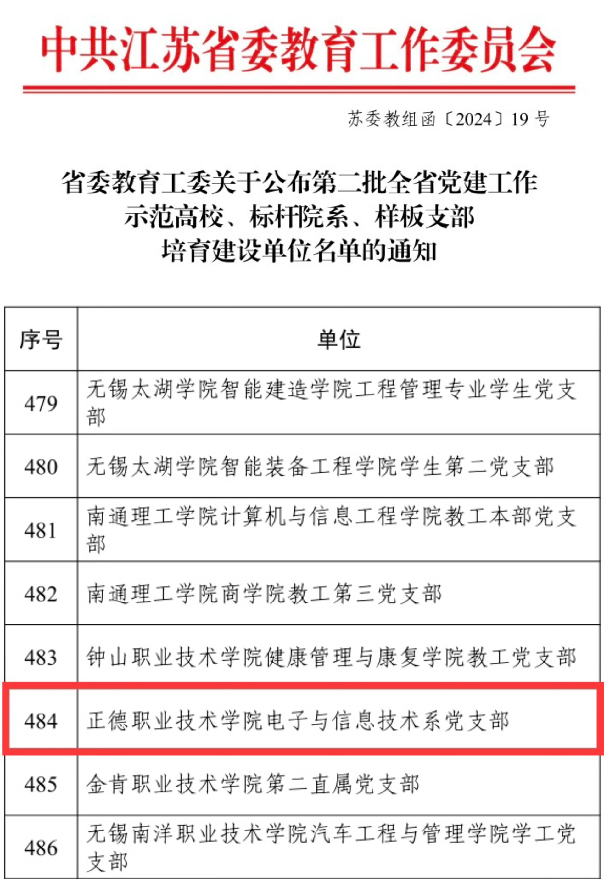 近日,省委教育工委办公室公布了关于新时代江苏高校三级党组织“强基创优”建设计划第二批遴选结果,色情视频 电子与信息技术系党支部被遴选为第二批“江苏省党建工作样板支部”培育建设单位。