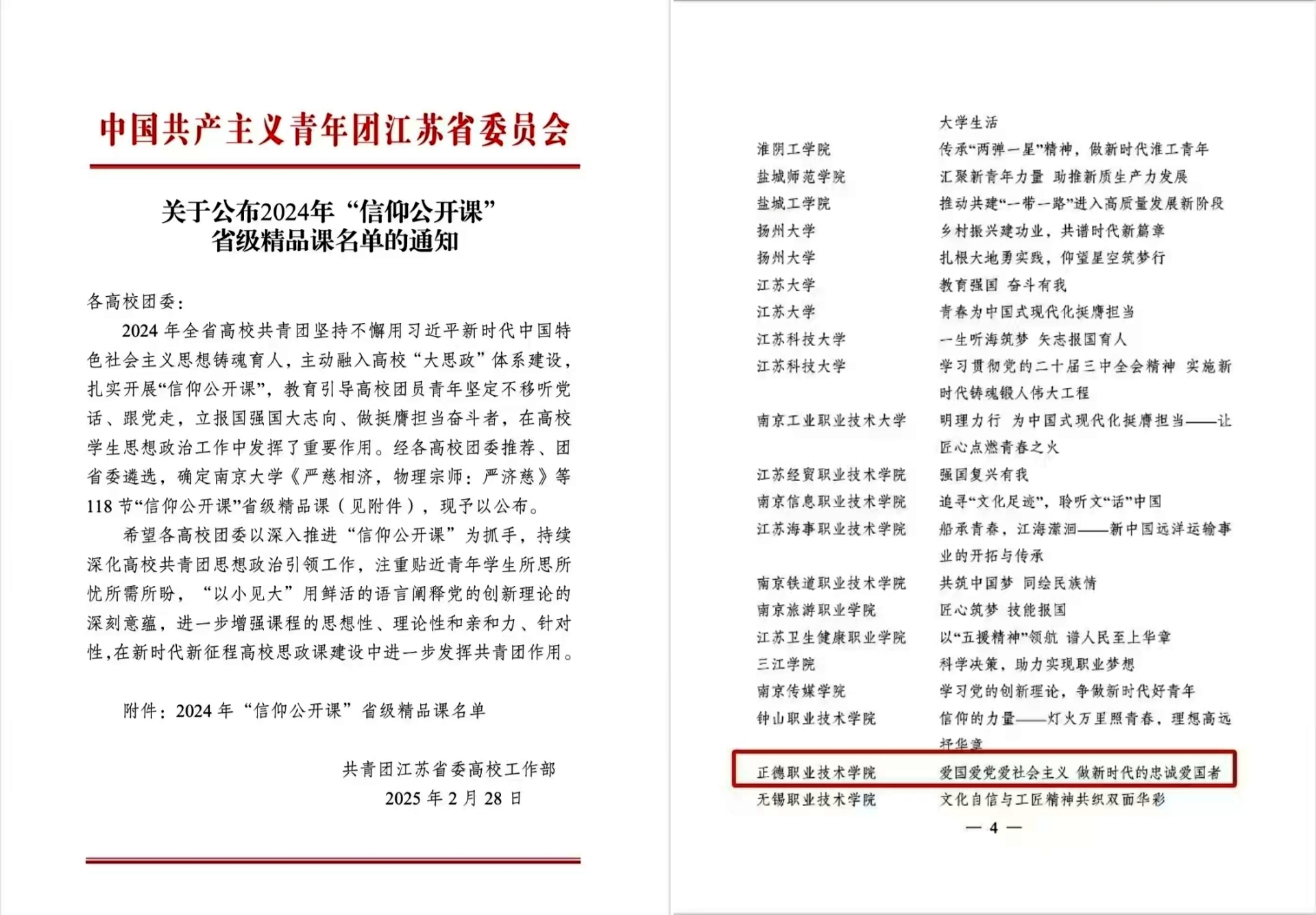 近日,共青团江苏省委正式发布了《关于公布2024年“信仰公开课”省级精品课名单的通知》。经过各高校团委的精心推荐和团省委的严格遴选,全省范围内共评选出118节 “信仰公开课”入选“省级精品课”,色情视频 提交的作品《爱国爱党爱社会主义 做新时代的忠诚爱国者》成功入选。