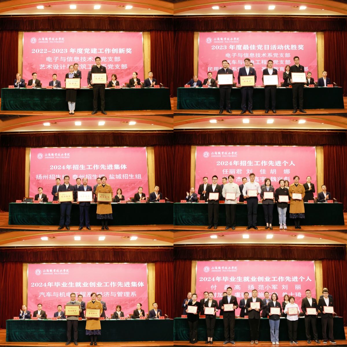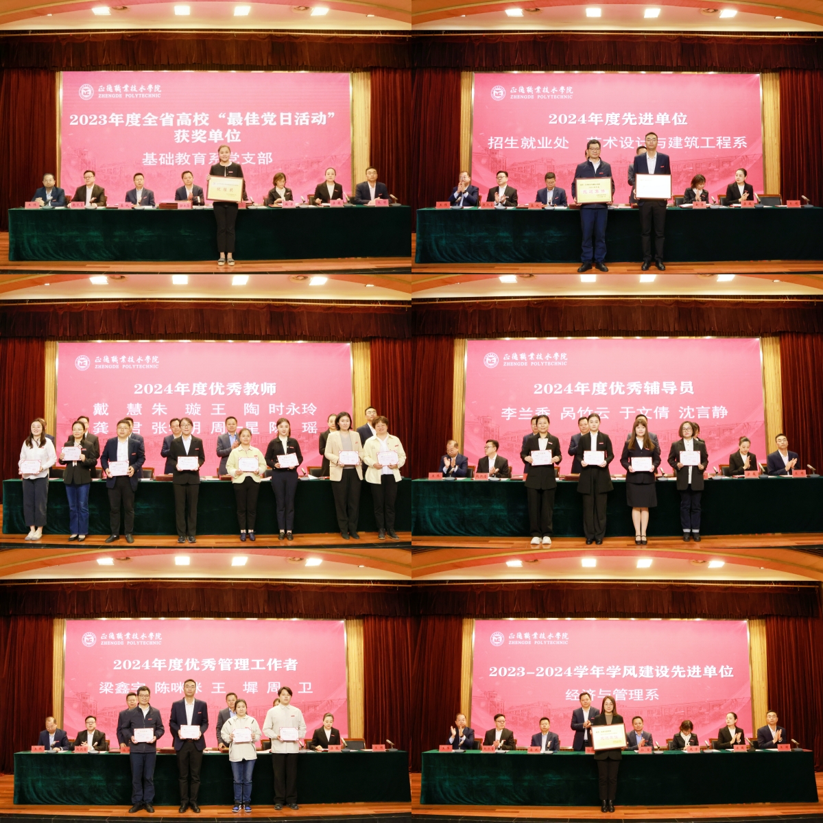 高斌、赵宇、赵凯雷分别宣读了相关表彰决定,会议表彰了2023年度全省高校“最佳党日活动”获奖单位、2024年度先进单位和优秀教职工、2022-2023年度党建工作创新奖和2023年度最佳党日活动优胜奖获奖单位、2024年招生工作先进集体和先进个人、2024年毕业生就业创业工作先进集体和先进个人、2023-2024学年学风建设先进单位。